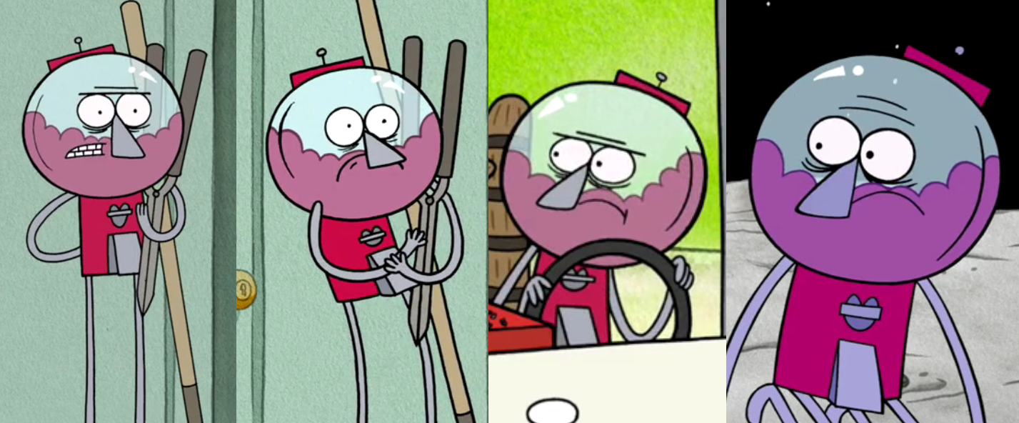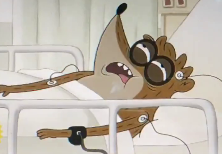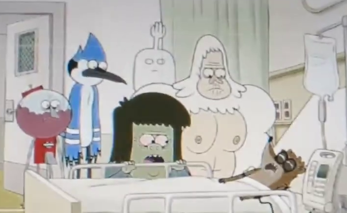 It's weird how Pops doesn't seem to be with everyone else even though these are flashback episodes. Even Skips came for Rigby at the hospital, but no Pops? Wonder if they couldn't afford to place his stock art behind Mordecai and Fives.