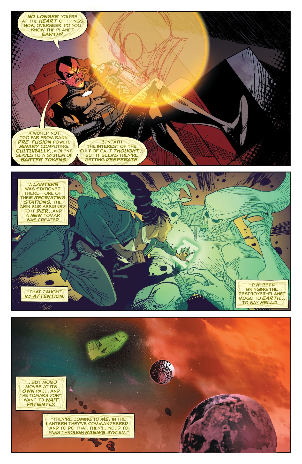 >>153085697From the patterns on his suit, and you know, being called Shade, I think this is Absolute Shade the Changing Man rather than Adam Strange, despite the mention of Rann and "being a Stranger".Or maybe they've combined them.