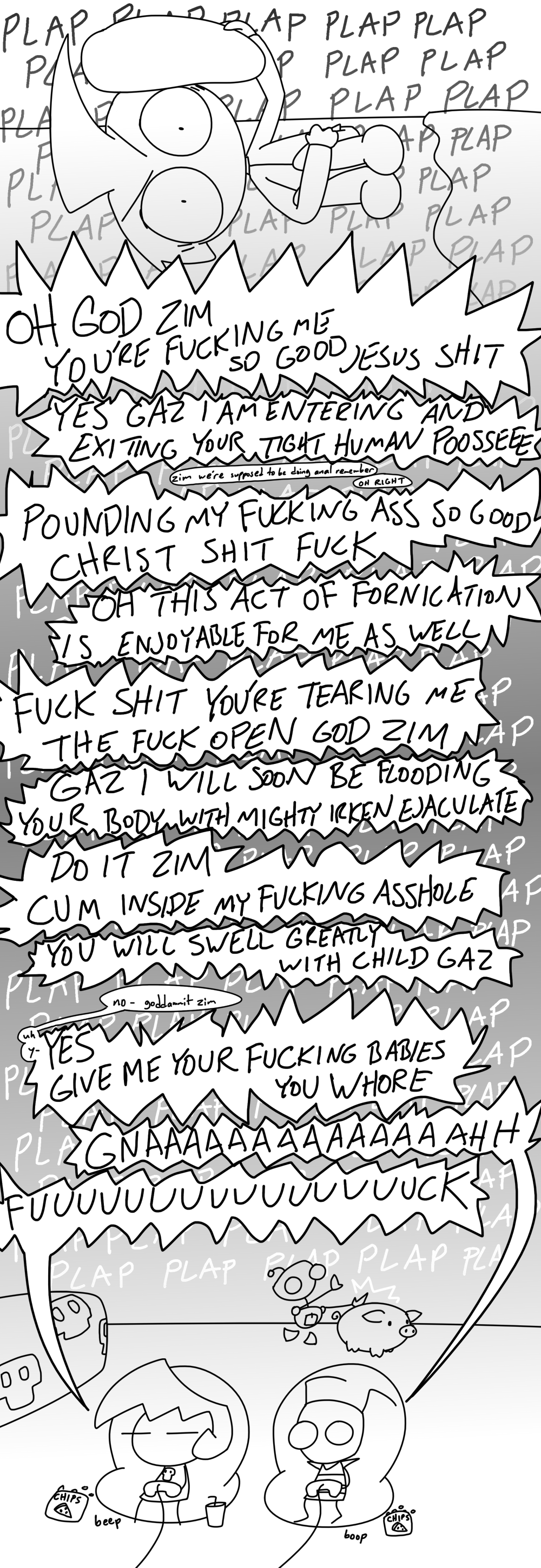 >>153086136>>153086106Zim's gooner arc>I'm three days into gooningThey probably do plus they can modify their bodies via their paks or just making new ones. As we see zim do both in the comic and show. >Gaz teases zim for being smooth>Zim gives himself a upgrade>"Look gaz I have de hurse cok you human girls love">Gaz actually falls to her knees, she can't believe it>Then she grabs him by the shirt>"Make it a pig">Ehhhhh>>153086913Truly based but why do dib so dirty lol