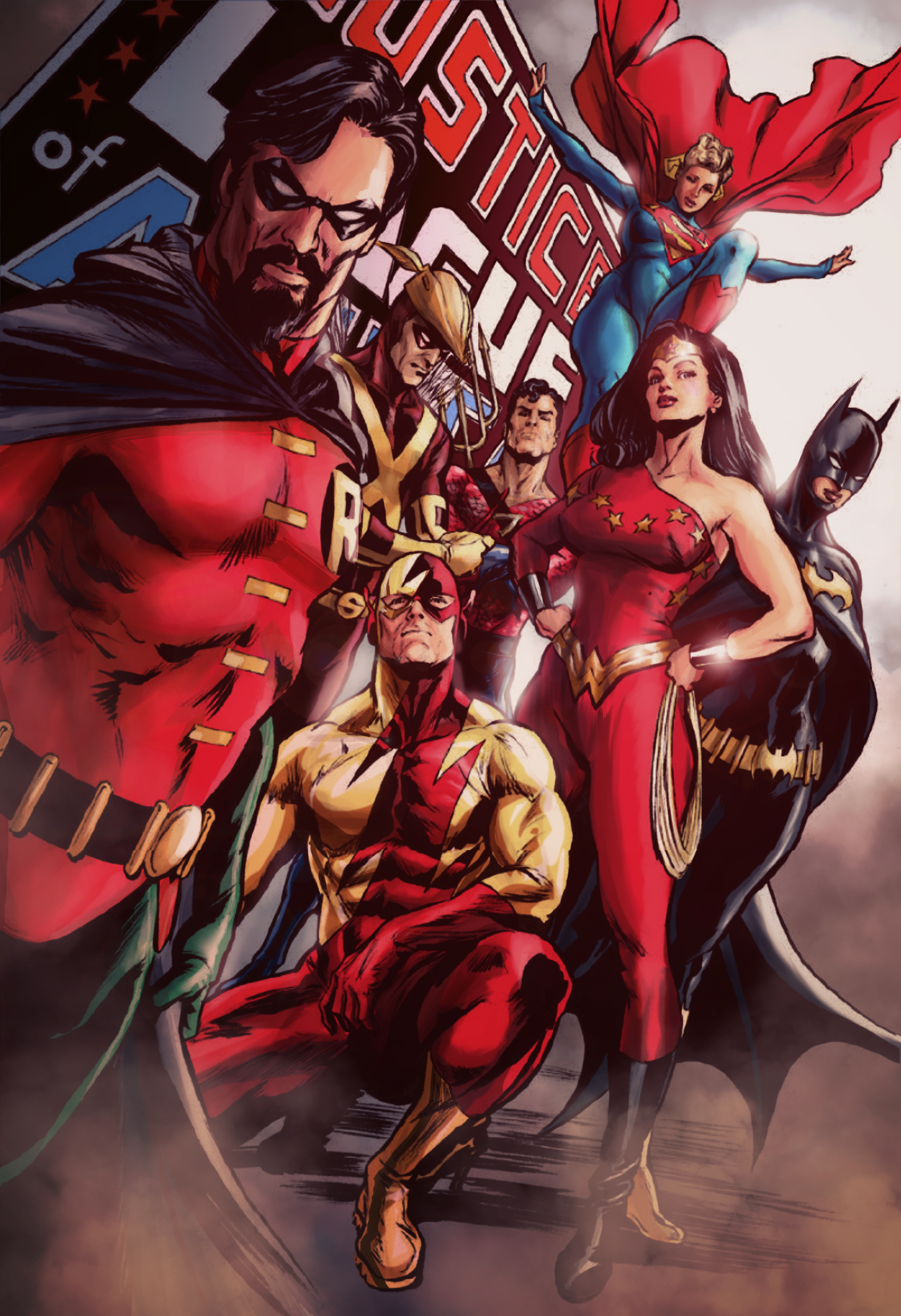 Alex Ross's take on the original Silver Age Teen Titans (plus Supergirl and Batgirl) as the Justice League.
