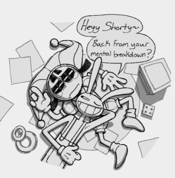 imagine if caine is just playing along and its revealed this whole thing was just a super duper cool matrix adventure he planned out