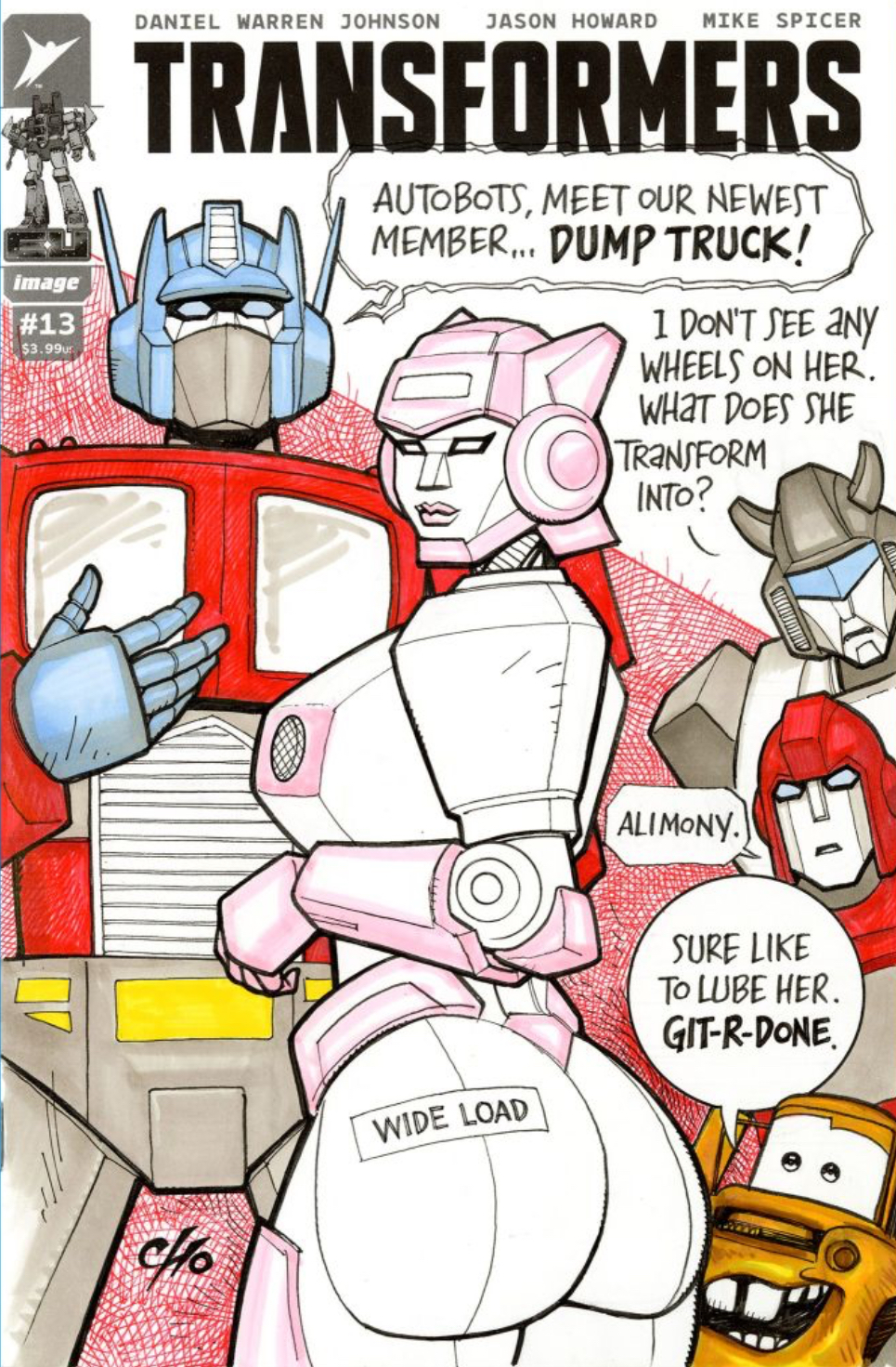>>153102045>What does she transform into?>Alimony. This still makes me giggle. But her butt is too human and round. It needs to be angled and chunky like Bulkhead's face.