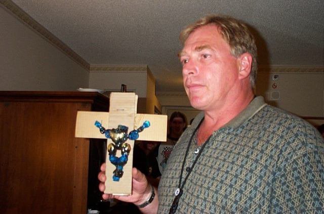 isn't there a picture of garry chalk holding up a crucified optimus prime action figure?