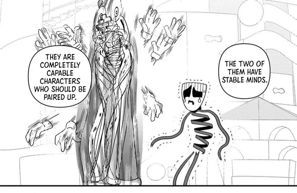 Thinking about it, romance would be horrible in thei digital circus, you see the five same people everyday and you have a boss that forces you to go in adventures together everyday, its like a school, if you breakup youre basically fucked forever until you abstract