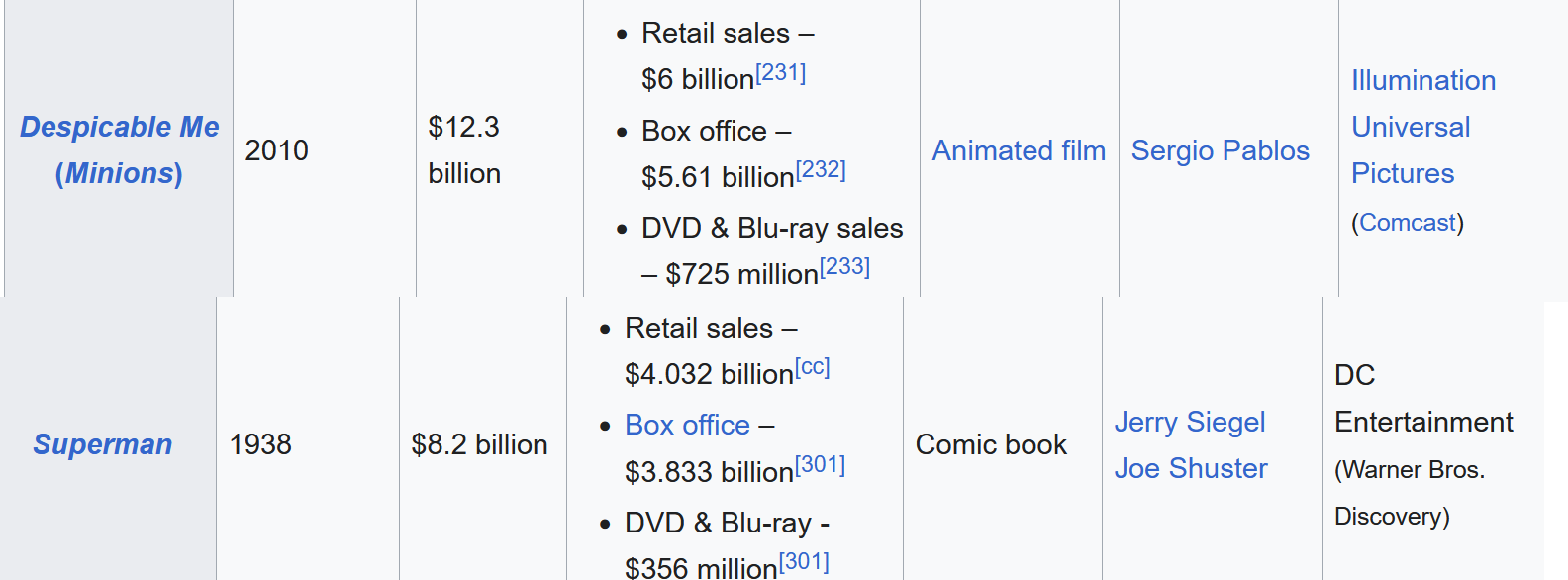 >>153112772Nope, both Minons Films made just under 2 billion, Synderverse alone clears that