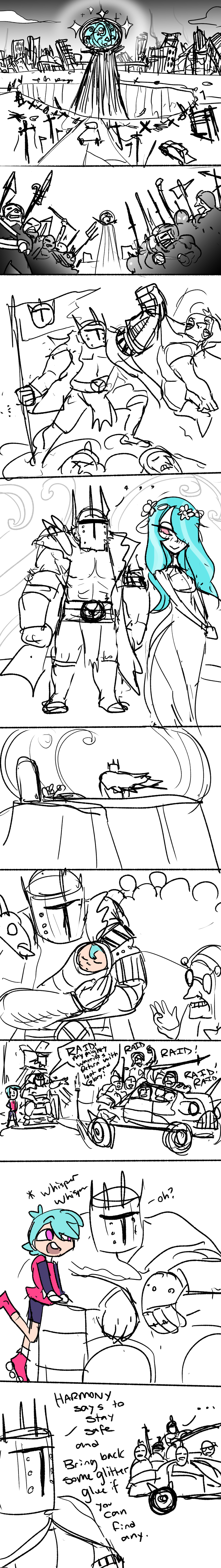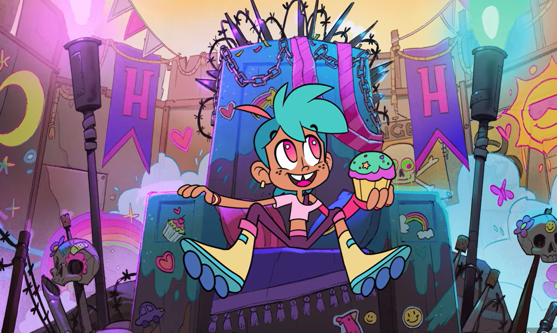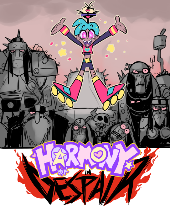 I highly agree and I don’t really know what it is, exactly, that makes this feel so fake. Maybe it’s just the utter lack of a personality in Harmony besides “ overly nice and likes all the generic nice things like muffins and sparkles”. It feels like writers trying too hard to be funny instead of making the character endearing through a real personality. I think this pilot’s biggest issue is how two-dimensional it all feels. There’s not really any unique personality going on. Even the designs they went with, the “scary guys” are just recycled Mad Max visual language and Harmony is just a bunch of “calarts girl” designs mixed together.