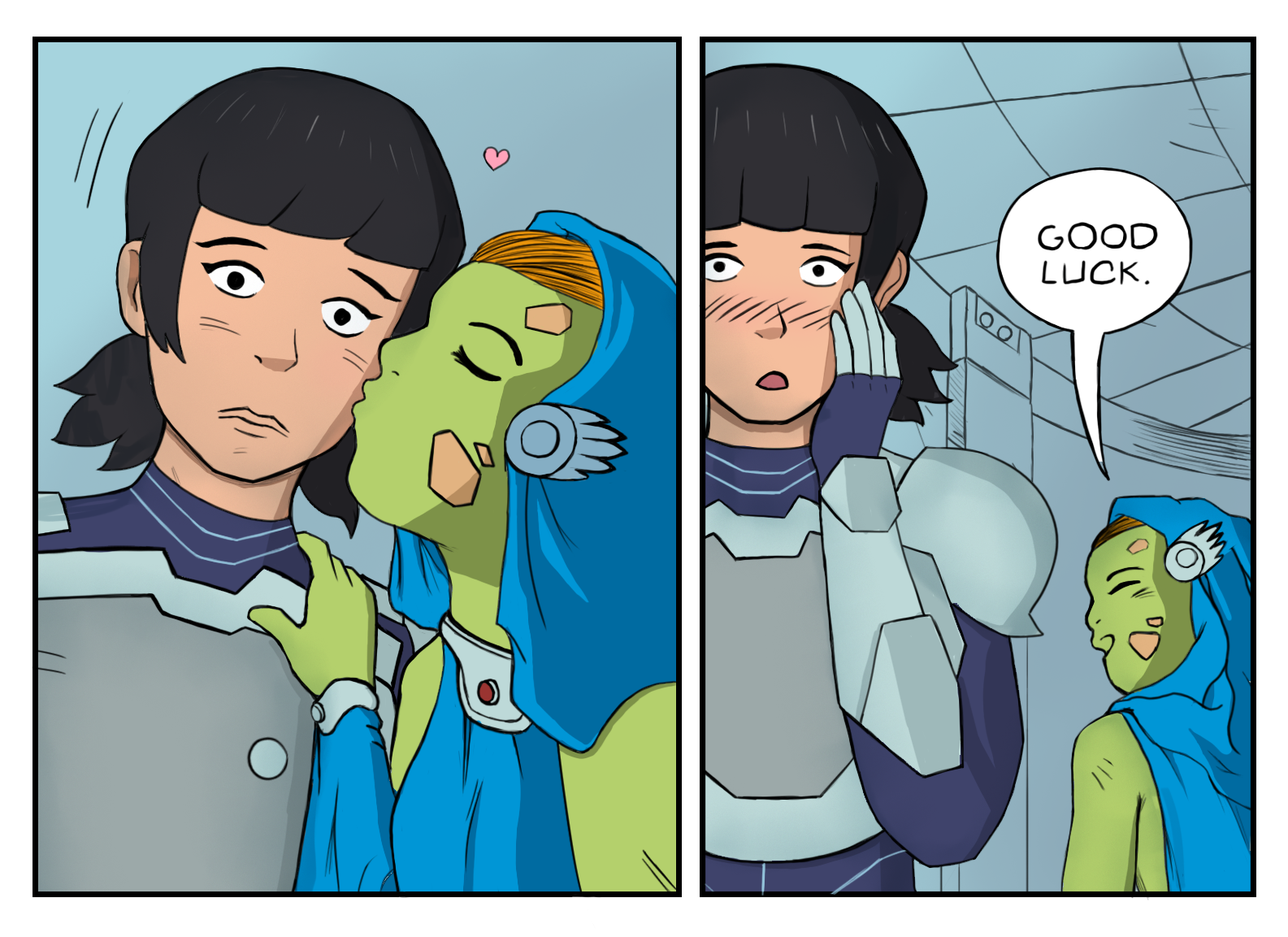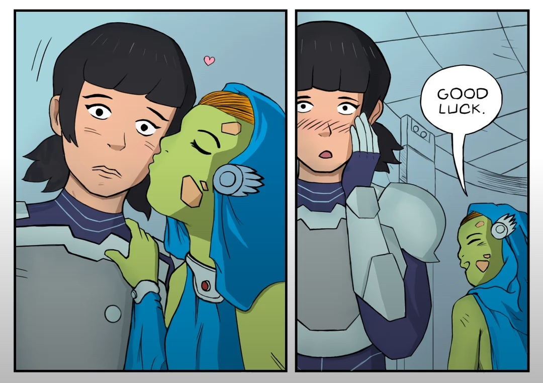 >>153127214Is she blushing because she can see the alien qt's huge girthy xeno-girldick?