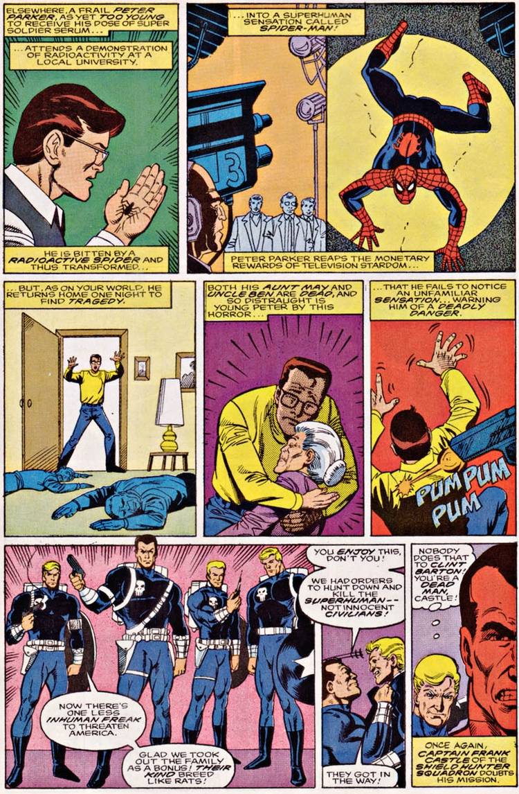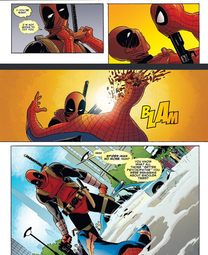>>153130295Ironically this was easier to swallow because the plan to kill him actually felt smart(hiding a bomb inside a dummy made to look like Doctor Octopus, so Spider-Man would assume his spider sense going off was because of a villain, not the bomb).Plus earlier in the issue the Punisher tried sniping him twice. Spider-Man dodged both bullets, and Punisher immediately got the fuck out of there because after that he realized he was not going to be able to kill Spider-Man with a gun.