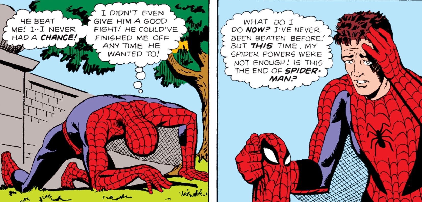 >>153130106>no retarded plot armor>Marvel wasn't cockscuking him, unlike other characters >some comics I didn't know about, now I can read themWhy should I be mad? >>153131963Spider-Man deserved to become Marvel's most popular hero back in the 1960s. Romita and Ditko's runs feel like deconstructions of the genre without the shit that makes it "mature"And in the 1960s! The hero won't give up and he will usually win in the end, okay. But look, how much he suffers, how he can't win some fights in a conventional way, multiple conflicts in a single issue, a villain with a secret identity, and the hero sometimes can be a piece of shit