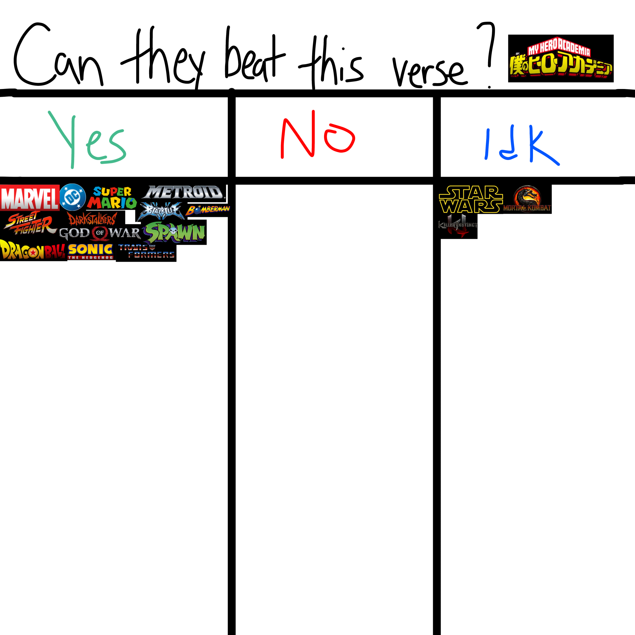 >>153126111move MK to yes since if it's all the characters then that'd include The One Being who is the sentient universe itself