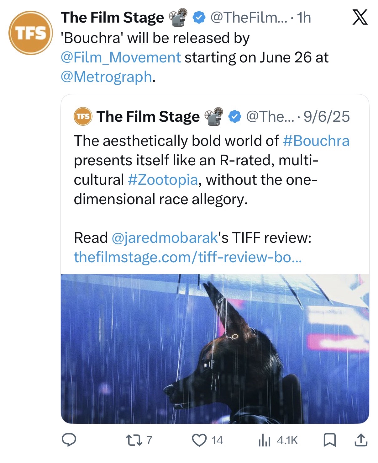 >>153130148Animation's not very good. Character designs are pretty boring and kinda hard to look at because the eyes are so fucking big. Like it wants to be cartoon-y, but also there's an unsettling amount of hyper realistic detail.>Bouchra, a 35 year-old queer Moroccan filmmaker in New York, is struggling to decide on her next project. She also happens to be an animated coyote in a world of anthropomorphic animals. Reflecting on how her sexuality has shaped her relationship with her mother, she crafts a fictionalised narrative to explore how it would differ if she’d hidden it. Rendered in striking 3D animation and infused with documentary intimacy, this thoroughly unique debut defies categorisation, using real life phone calls between co-director Bennani and her mother as part of the narrative.Even worse, it's a navel-gazing movie about a creator struggling to create and also how hard it is being QUEER and having MOMMY ISSUES. What a fucking waste.