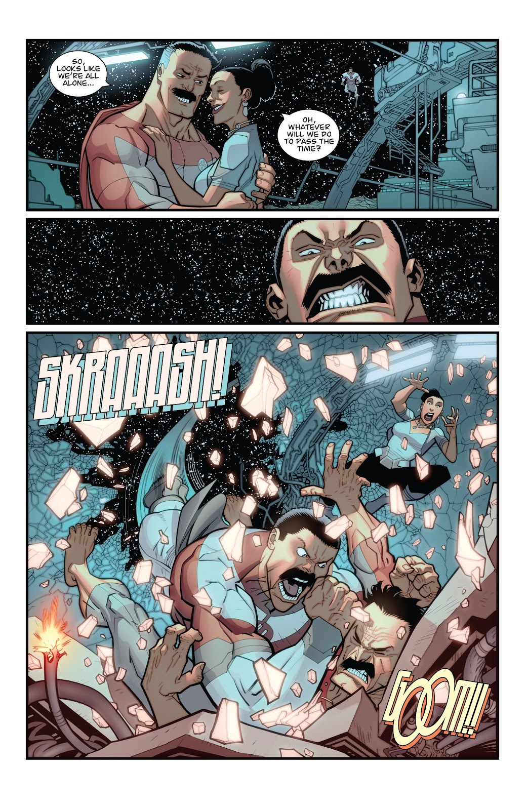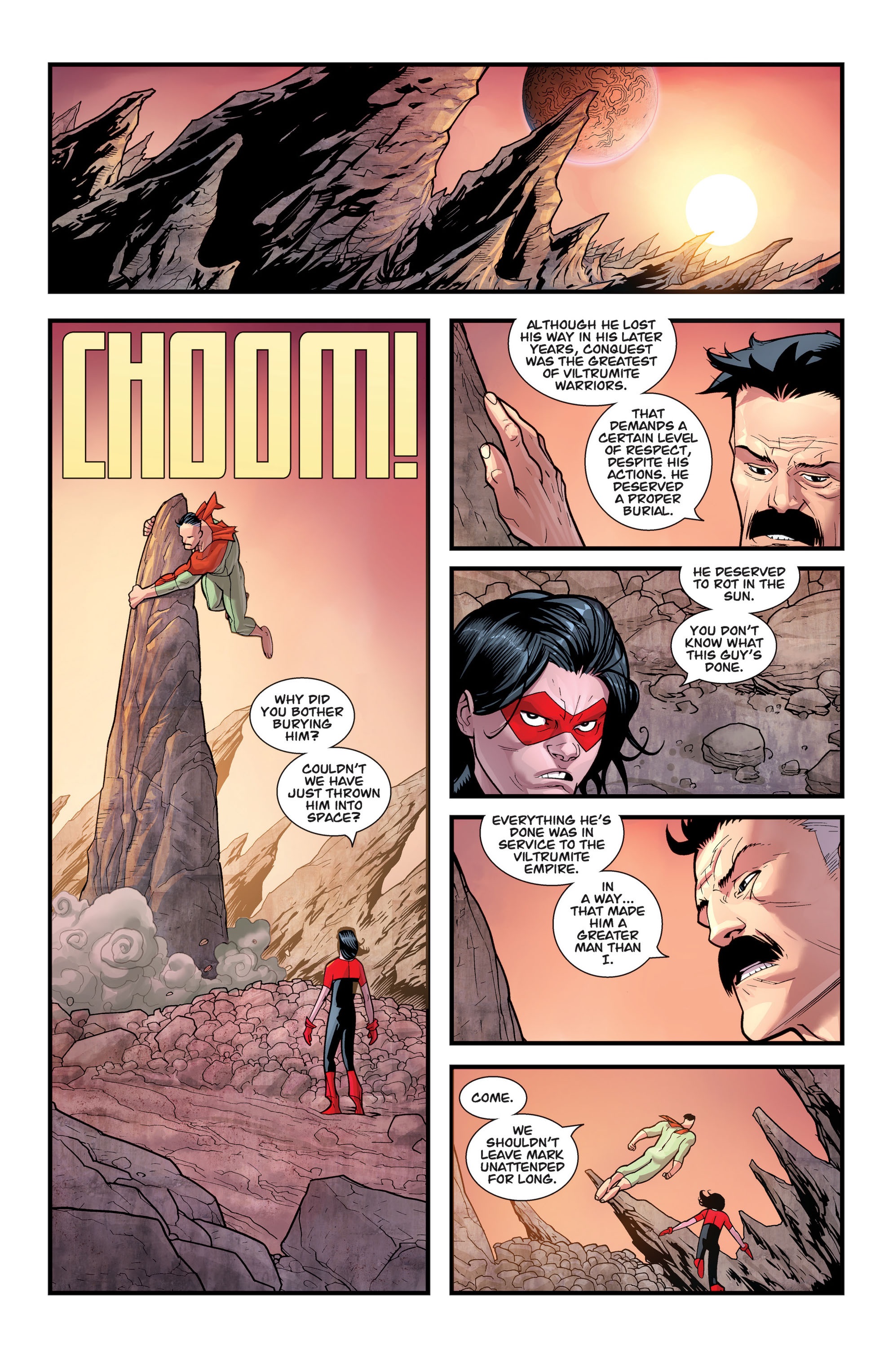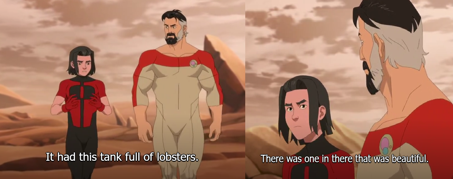This is a minor lgrind, but it's stupid how many alien planets (and and Hell) where there are creatures that can give Viltrumites a hard time. On Earth, Nolan can body super-huge Kaiju, but ever truck-sized critter can just soak a hundred punches?