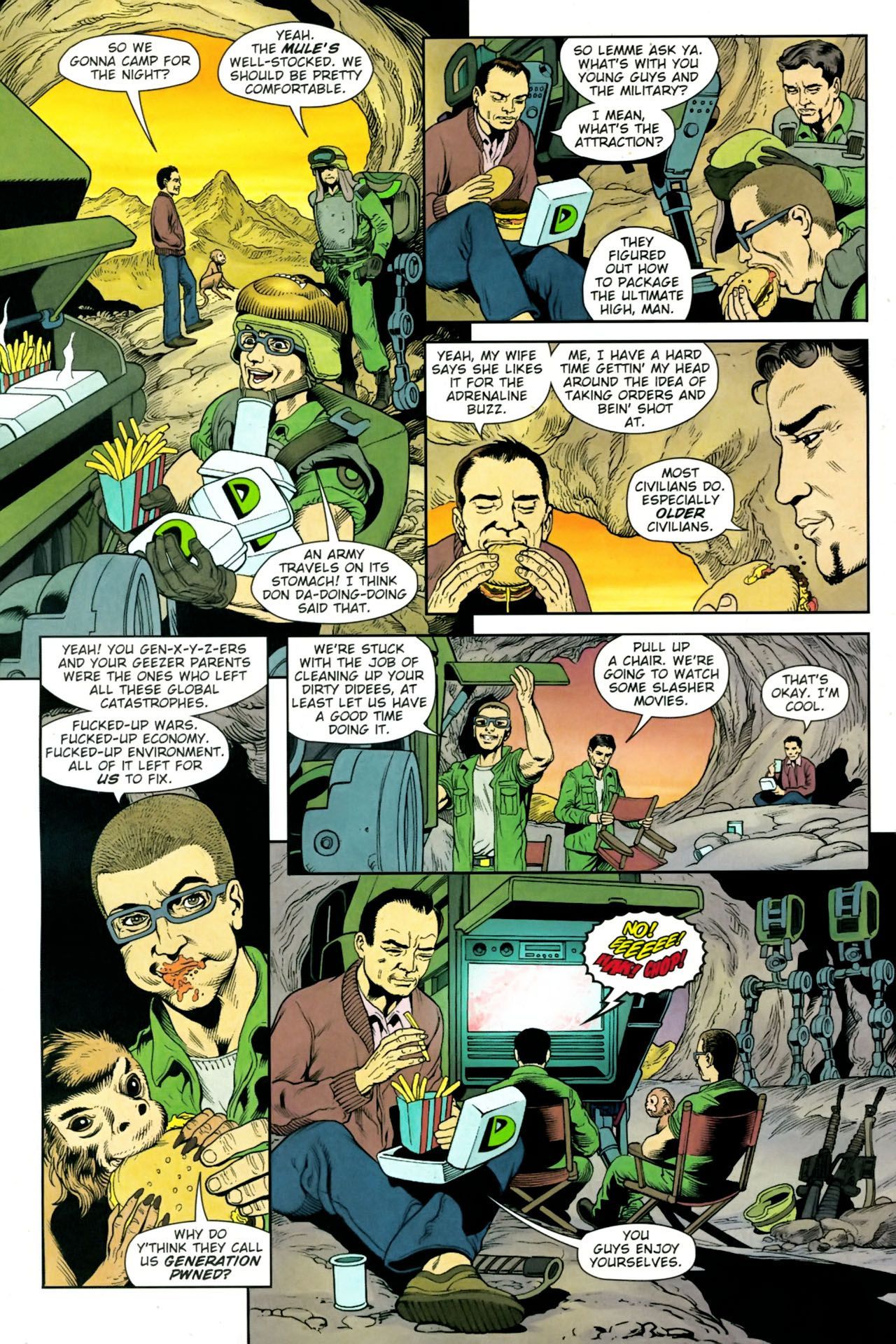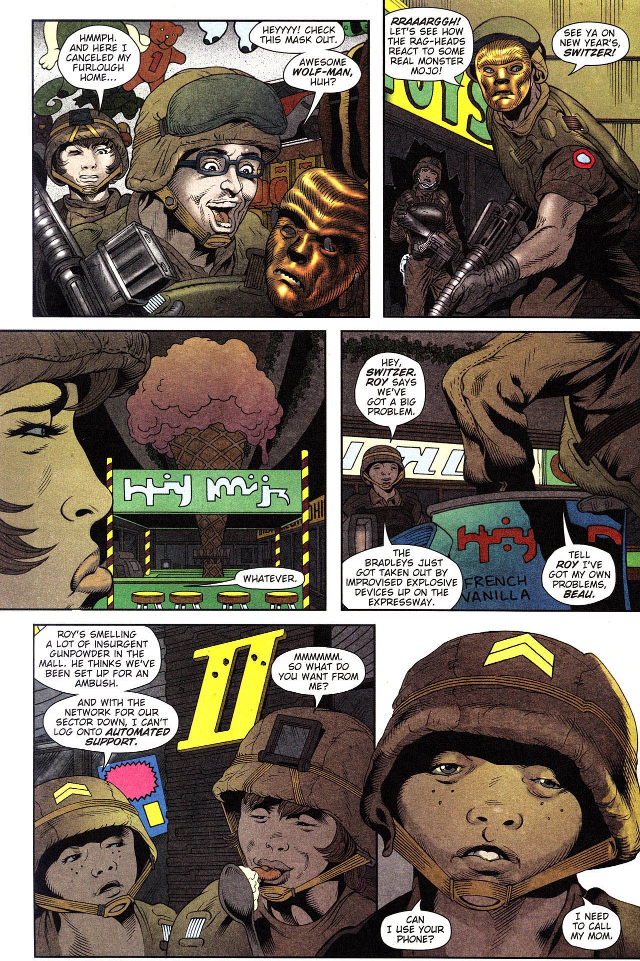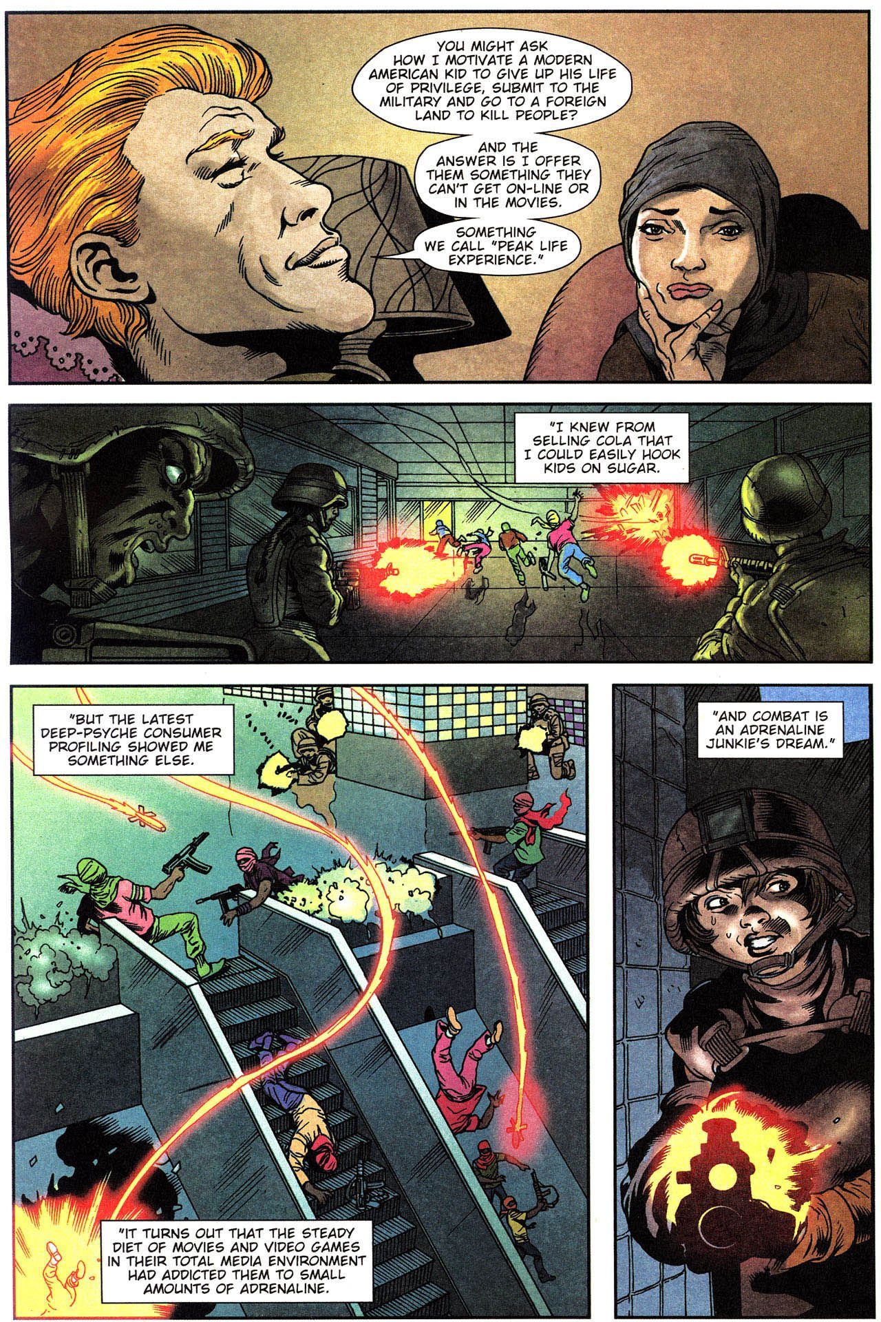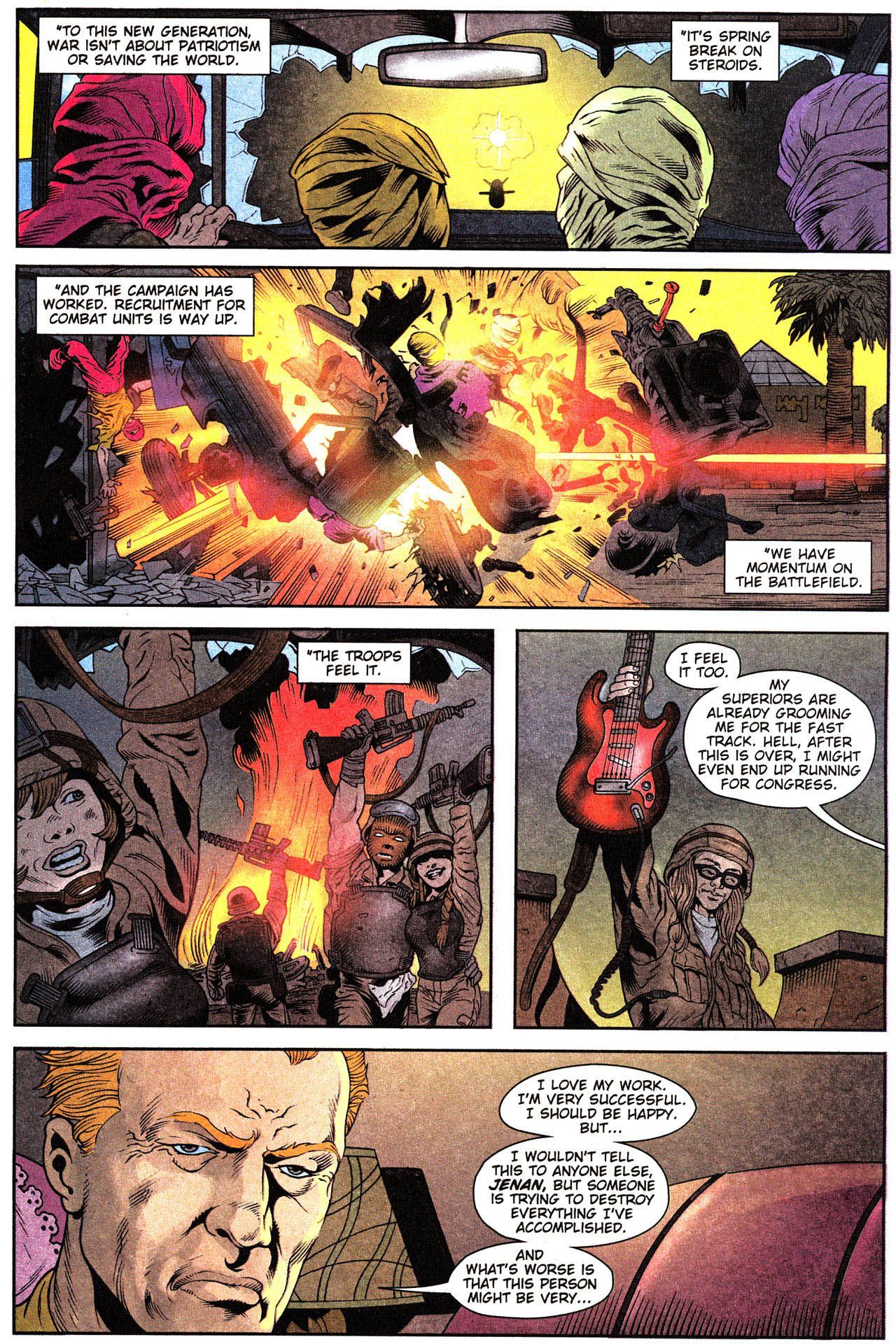 >When a New Jersey National Guard unit is deployed indefinitely to a never-ending series of wars in the Middle East, the citizen soldiers--ranging from kids fresh out of high school to middle-aged corporate managers--are motivated by the modernized military, who has gone into take-no-prisoners marketing mode.This series is rated 18+, so if you're not eighteen years or older say so and mods will make sure you're safe.
