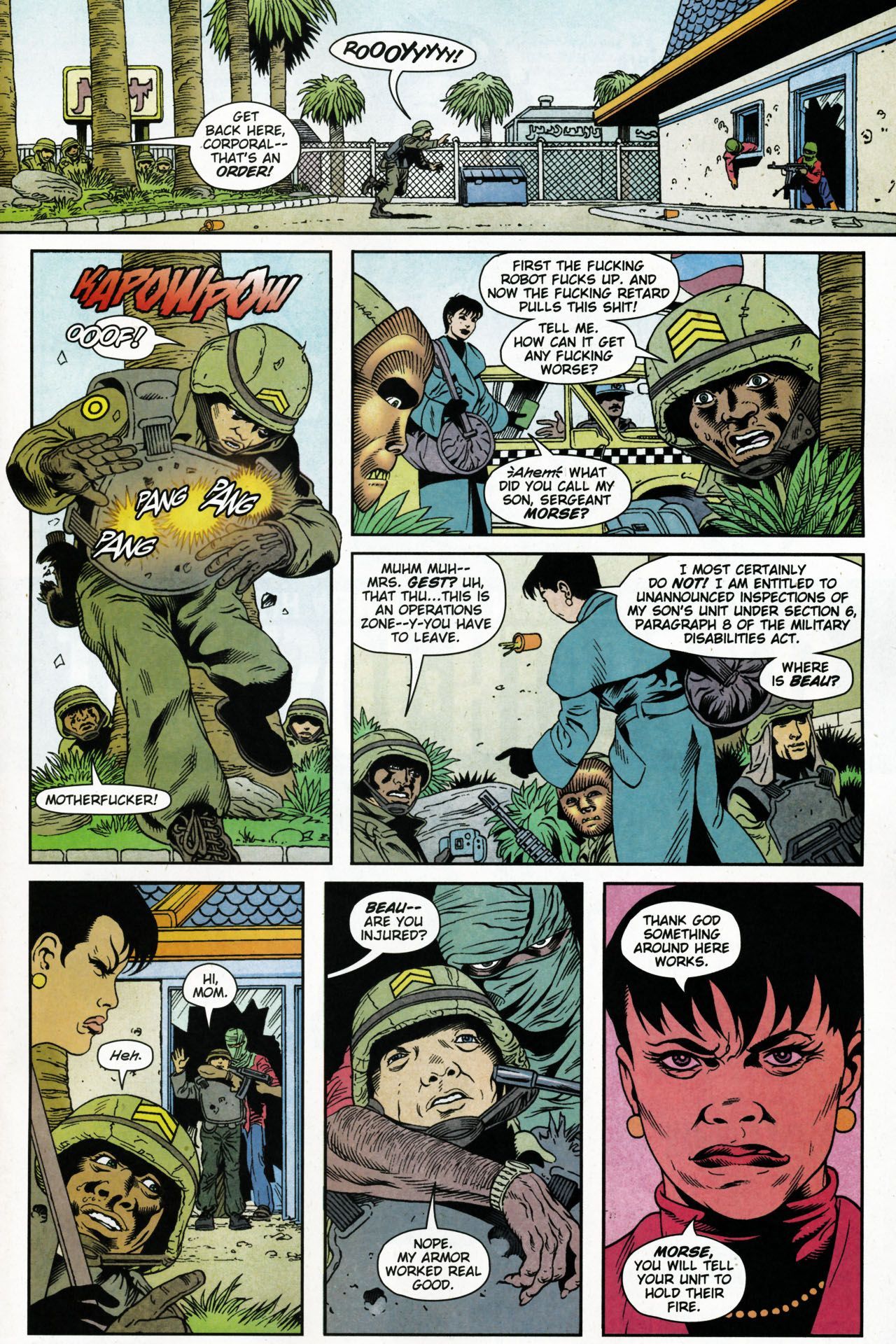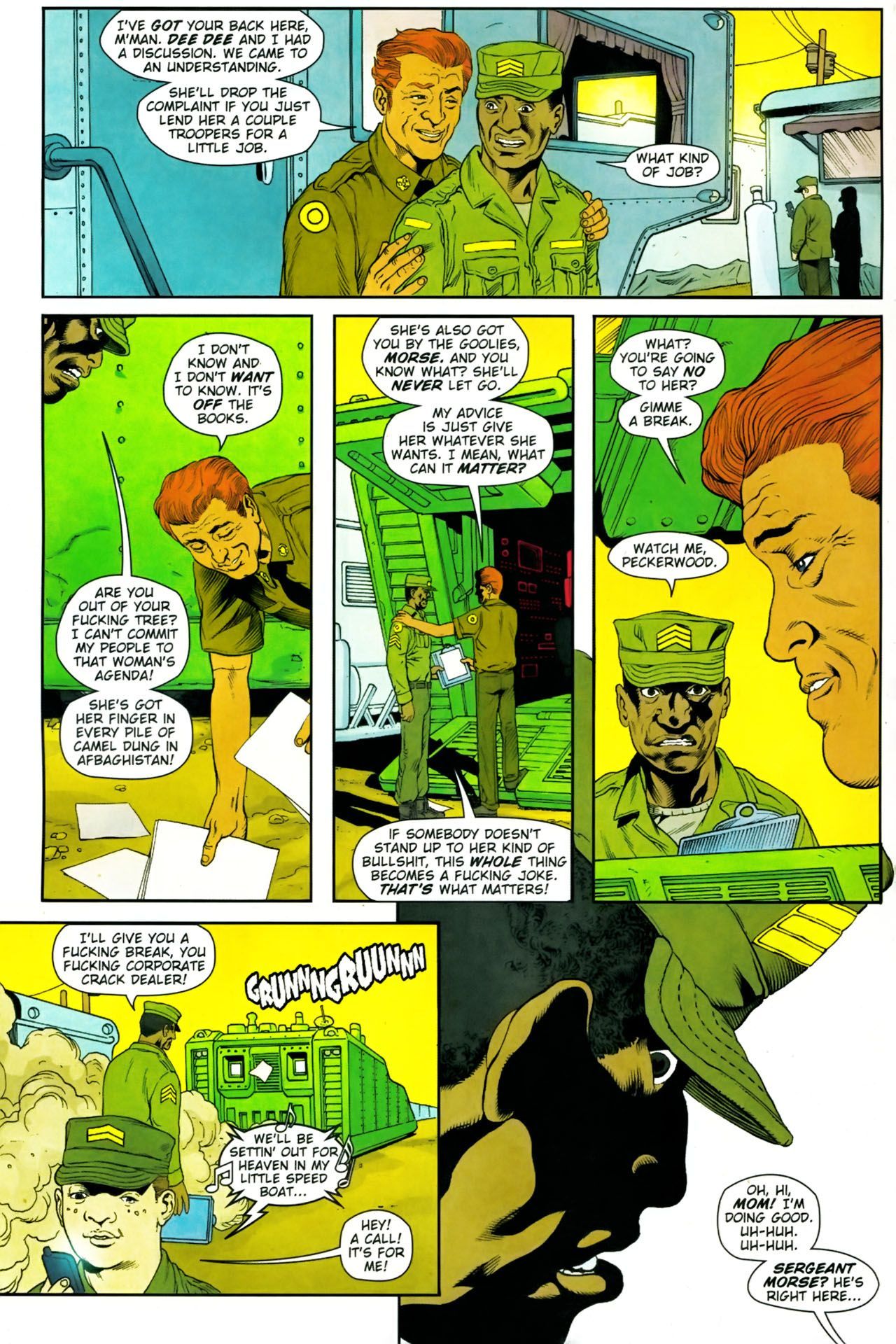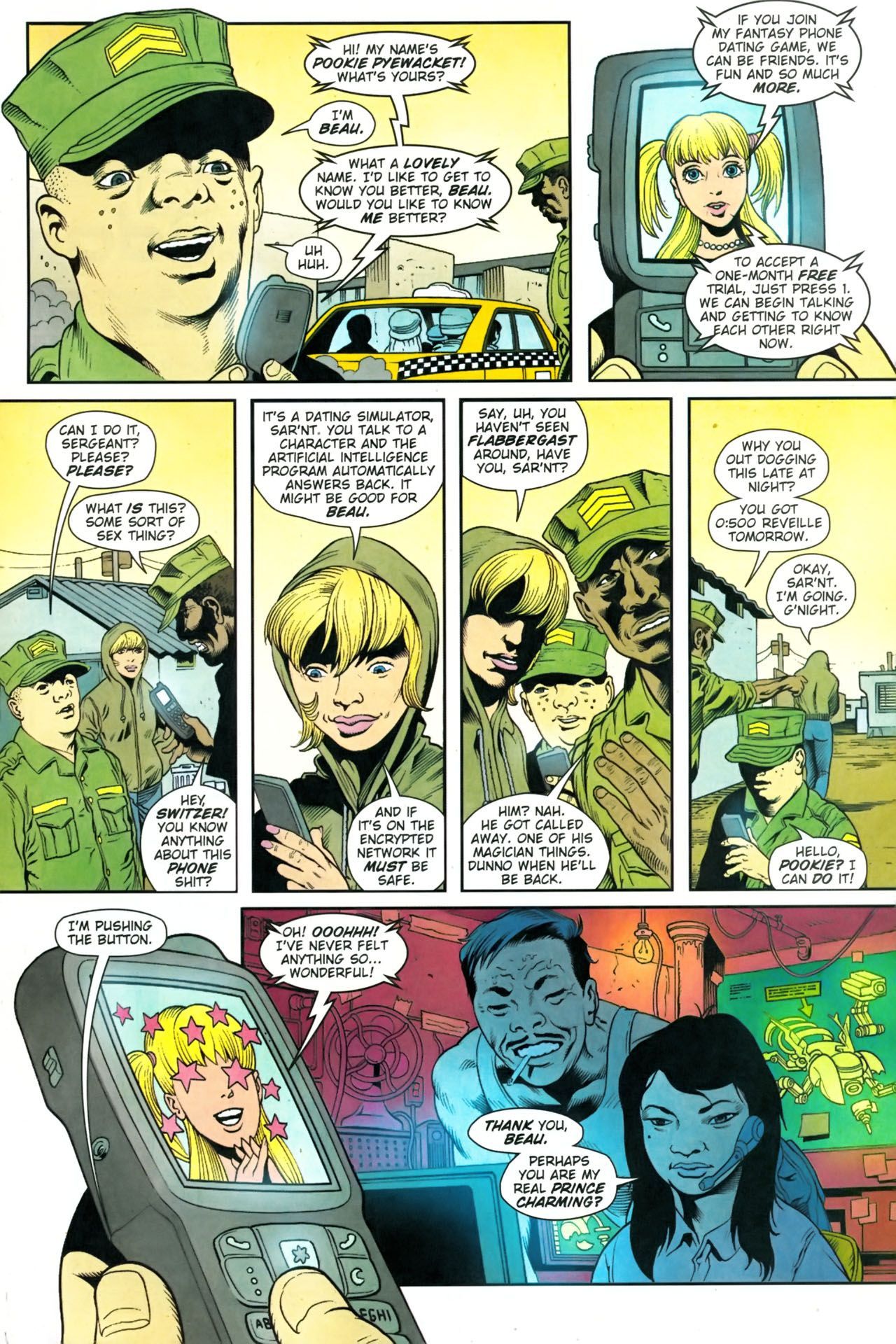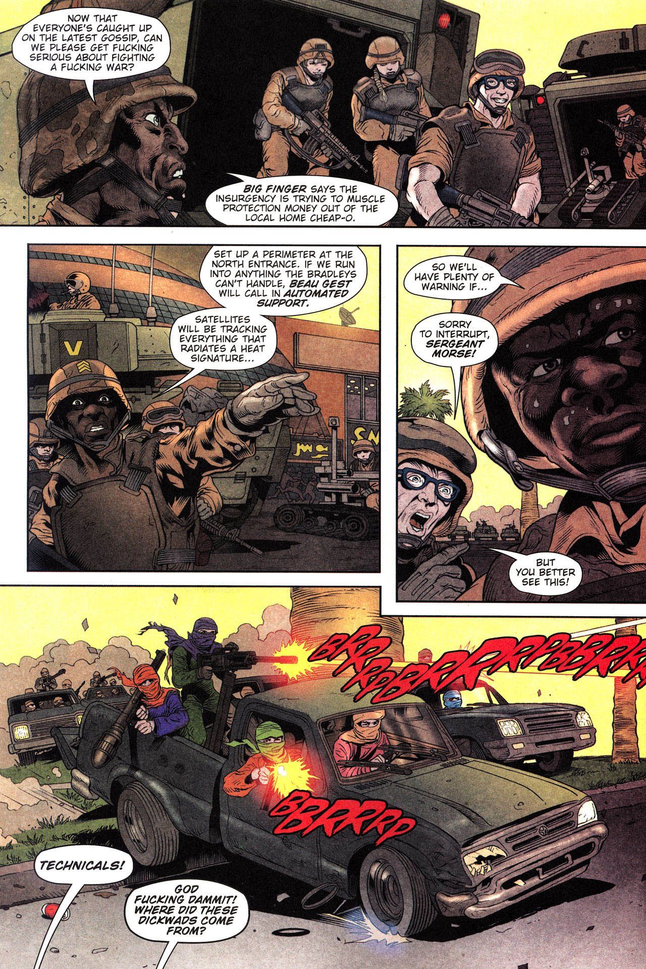>When a New Jersey National Guard unit is deployed indefinitely to a never-ending series of wars in the Middle East, the citizen soldiers--ranging from kids fresh out of high school to middle-aged corporate managers--are motivated by the modernized military, who has gone into take-no-prisoners marketing mode.This series is rated 18+, so if you're not eighteen years or older say so and mods will make sure you're safe.