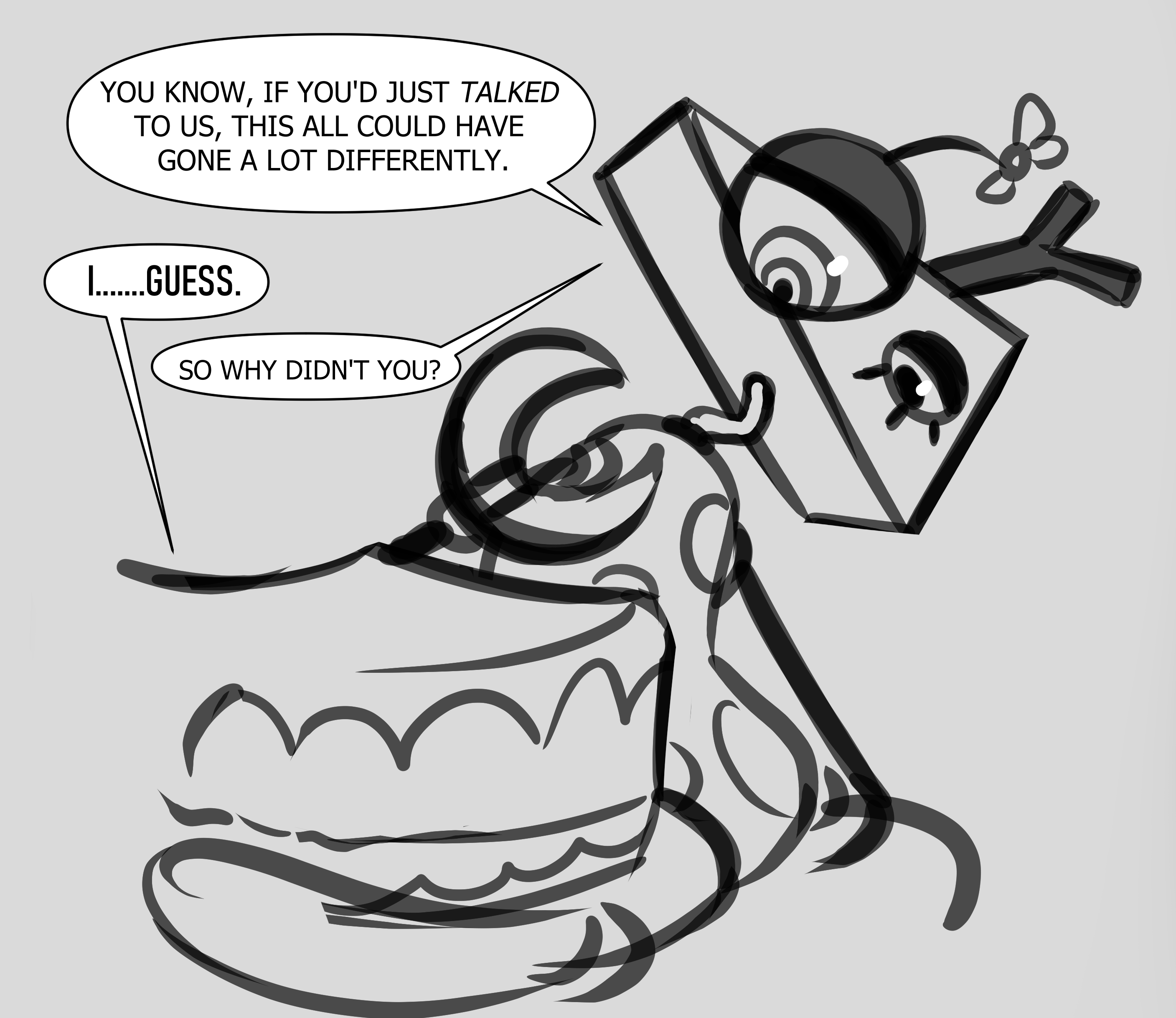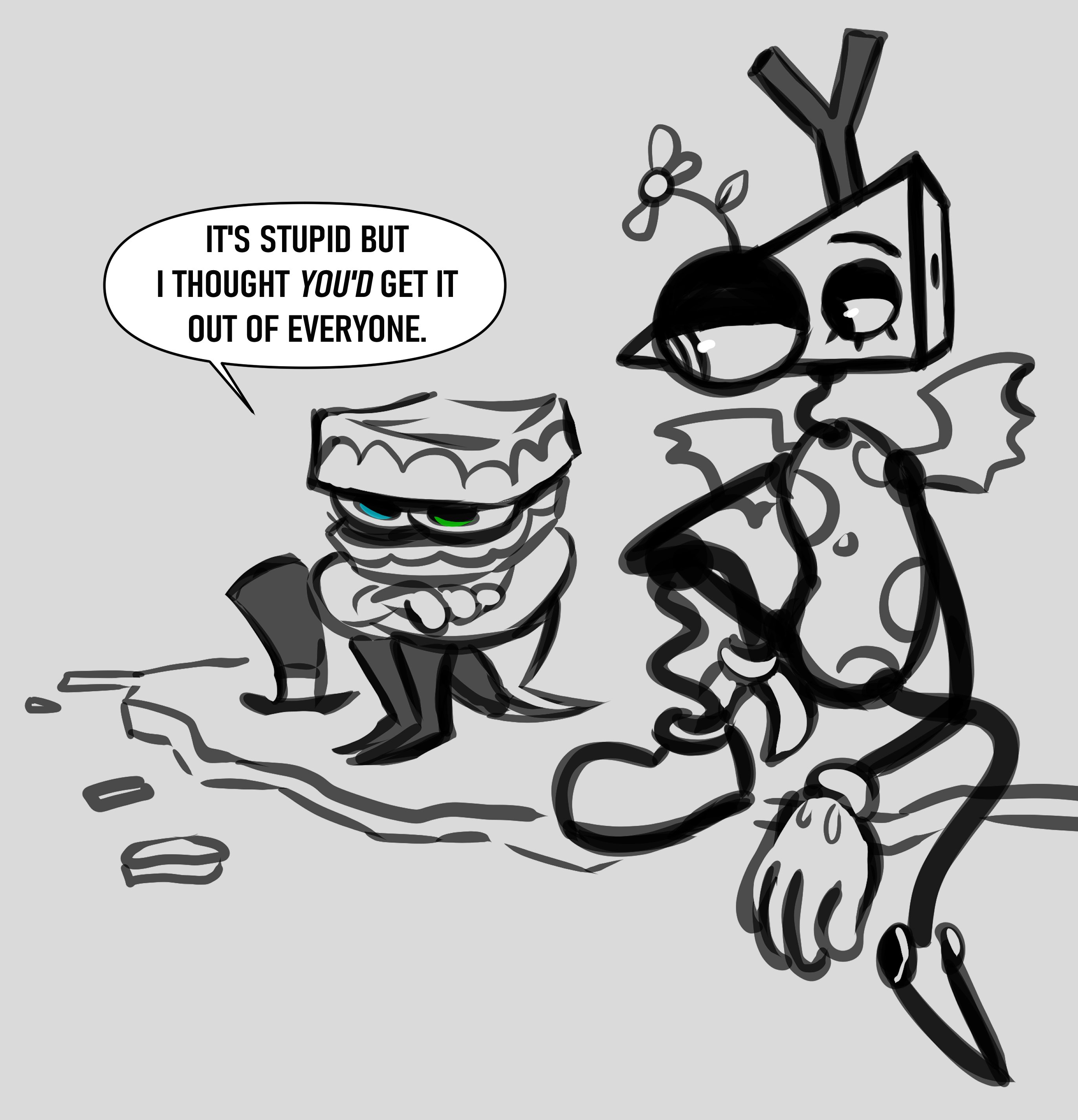 >>153133643Bubble would sexually harass Ragatha if he had any feelings for her. He'd mistake it for genuine flirtation though.