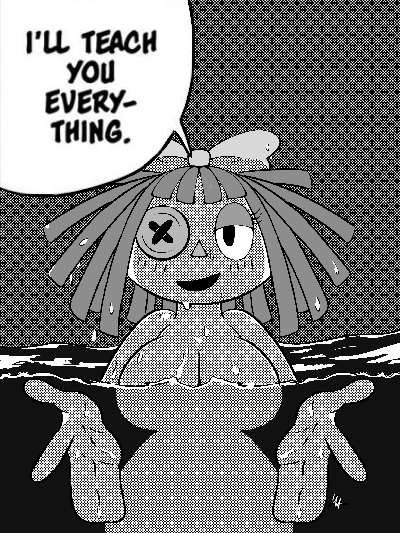 >>153134505hugging a naked Ragatha, her being embarrassed that she doesnt really have the bits that women typically do, then reassuring her that shes still hot without them....