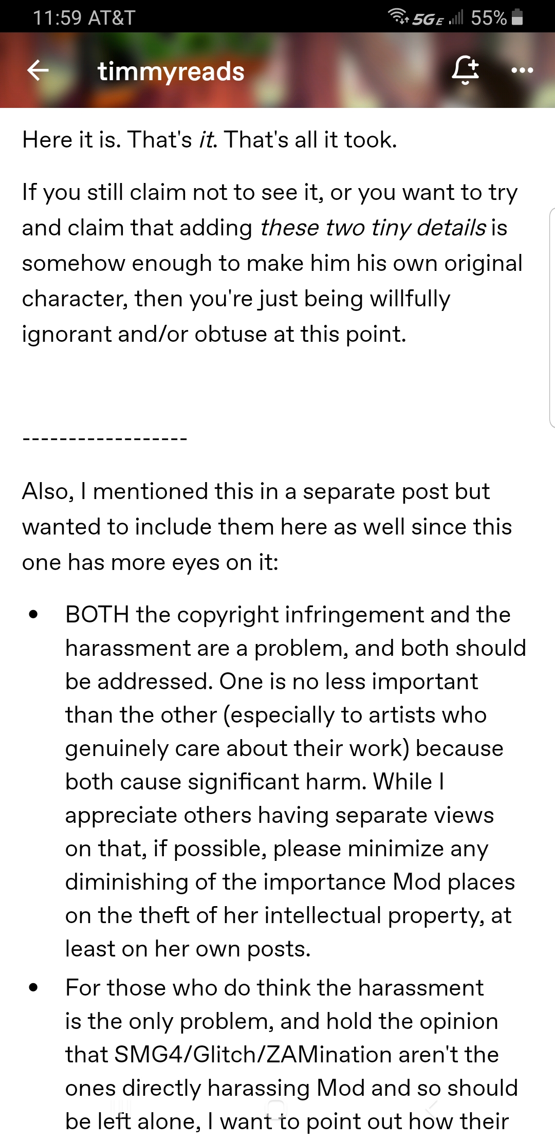 >>153134543>>153136783Both posts are right desuI think this is the gist of things:1. glitch prods is pre-emptying a lawsuit, clearly aware, and has refused to show evidence of their design concepts2. zam got scared by the lawsuit too and DFE'd every mention of modmad3. there's a discord of little kids who decide to crusade in favour of SOMEONE who may be smg4, zam, glitch or [dunno]4. one of these kids is an off the rails schizo and likely represents at least 1/3rd of both threads replies5. modmad has devolved into full capital C midlife crisis, decided she will die on this hill, and this may be related to two years worth of harassment by the aforementioned discord of little kidsafaik the lawsuit wouldn't hold - in the USA - under fair use / legally distinct policies. no idea how it holds in the UK, Australia (are glitch or zam even legally holding business in australia?)if modmad has money to burn he should start one HELL of a dmca harassment campaign however.