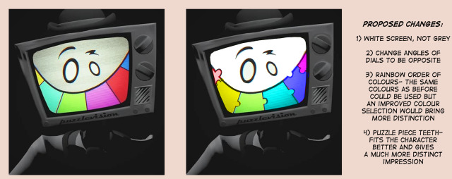 >>153136366I've seen the color bar used for a tv-themed character before, but it was female and the color bar was being used for their hair.Anyway I think the bigger smoking gun here is the dials. Not only do the dials match exactly, but on RGB I think they might may be intended as slanted evil eyes in an unusual position (or at least that's how I read his face), whereas Mr. Puzzles' dials are just decoration.