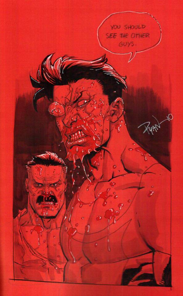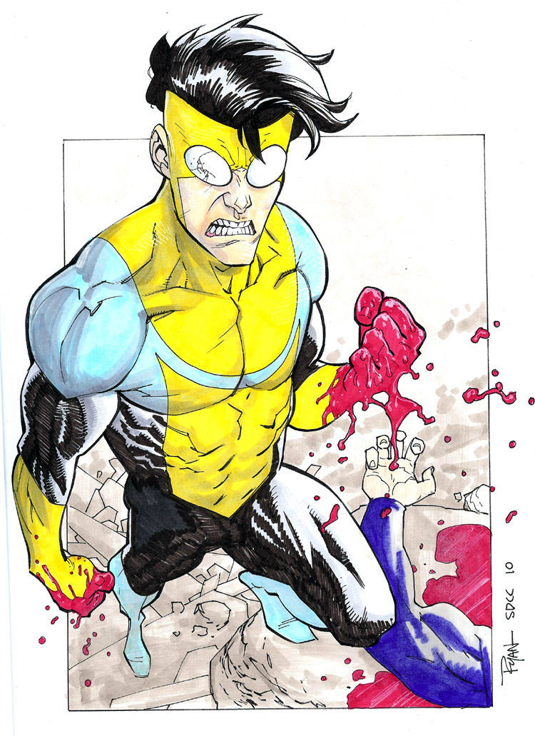 >Invincible vs the Hulk>Kirkman: I don't know... Is Invincible strong enough to crush the Hulk's head?>Ottley: ... He could rip [Hulk] to pieces, throw his head into the Sun, draw and quarter him... Yeah, Invincible.>Invincible vs Thanos>Kirkman: Without [Infinity Gauntlet], I think easy [Invincible] win.>Ottley: I think even with [Infinity Gauntlet]. [Thanos] is about to snap and [Invincible] just breaks the fingers, rips the glove. Now Invincible has the gauntlet.>Invincible vs Superman>Ottley: I've already drawn that. Invincible *DEMOLISHES* Superman. And fans HATE it.>Kirman: I think Superman might be able to defeat Invincible just with the sheer boredom that that character causes.... I just don't know how the powers match up. Who's stronger, who's faster... Who, you know, maybe.>Invincible vs Debbie>Kirkman: Invincible would FUCK Debbie up.>Ottley: Yeah>Kirkman: [Debbie] would be a kind and gentle puddle of soup by the end of the fight.