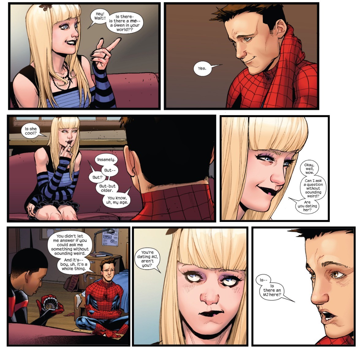 >No MJ Gwen’s like my sister, I would never date her