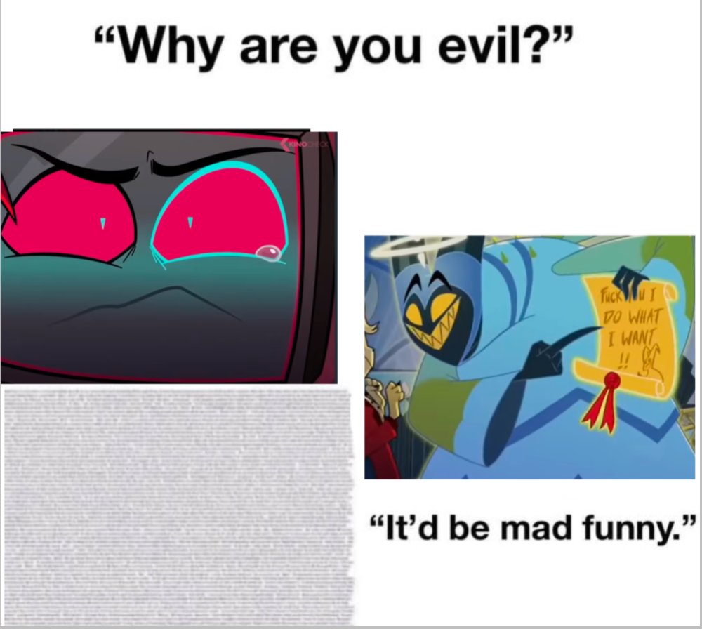 >>153163079The obsessive hatred some people have over Hazbin Hotel is absolutely hysterical. I swear every day they're making up new things in the show to bitch about because they don't have any personality outside of their autistic hatred for Vivziepop.