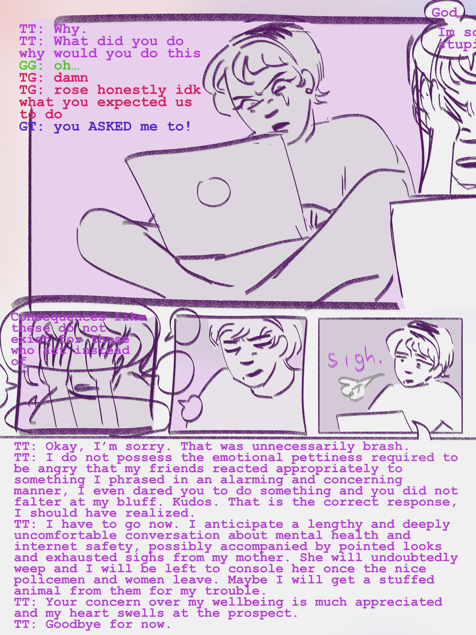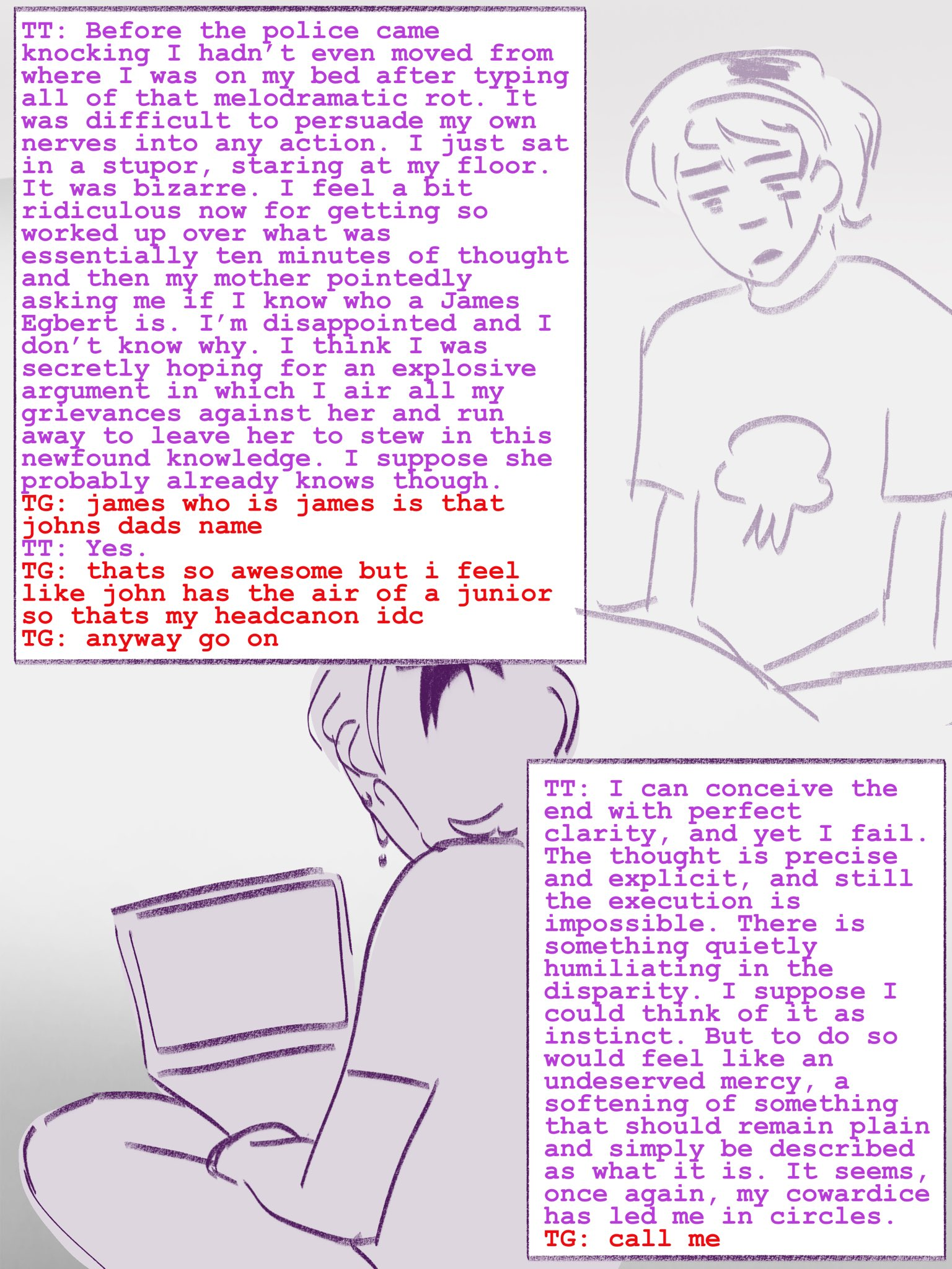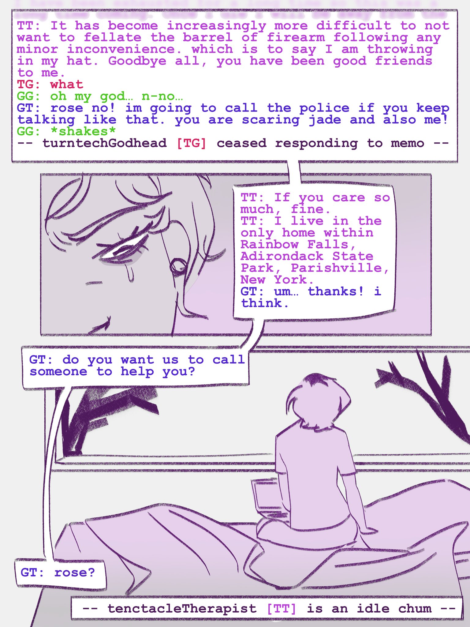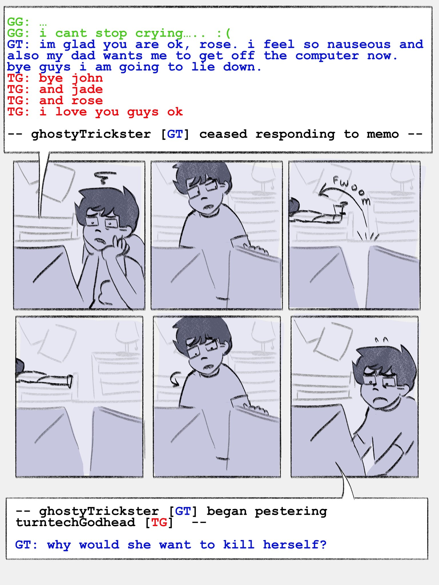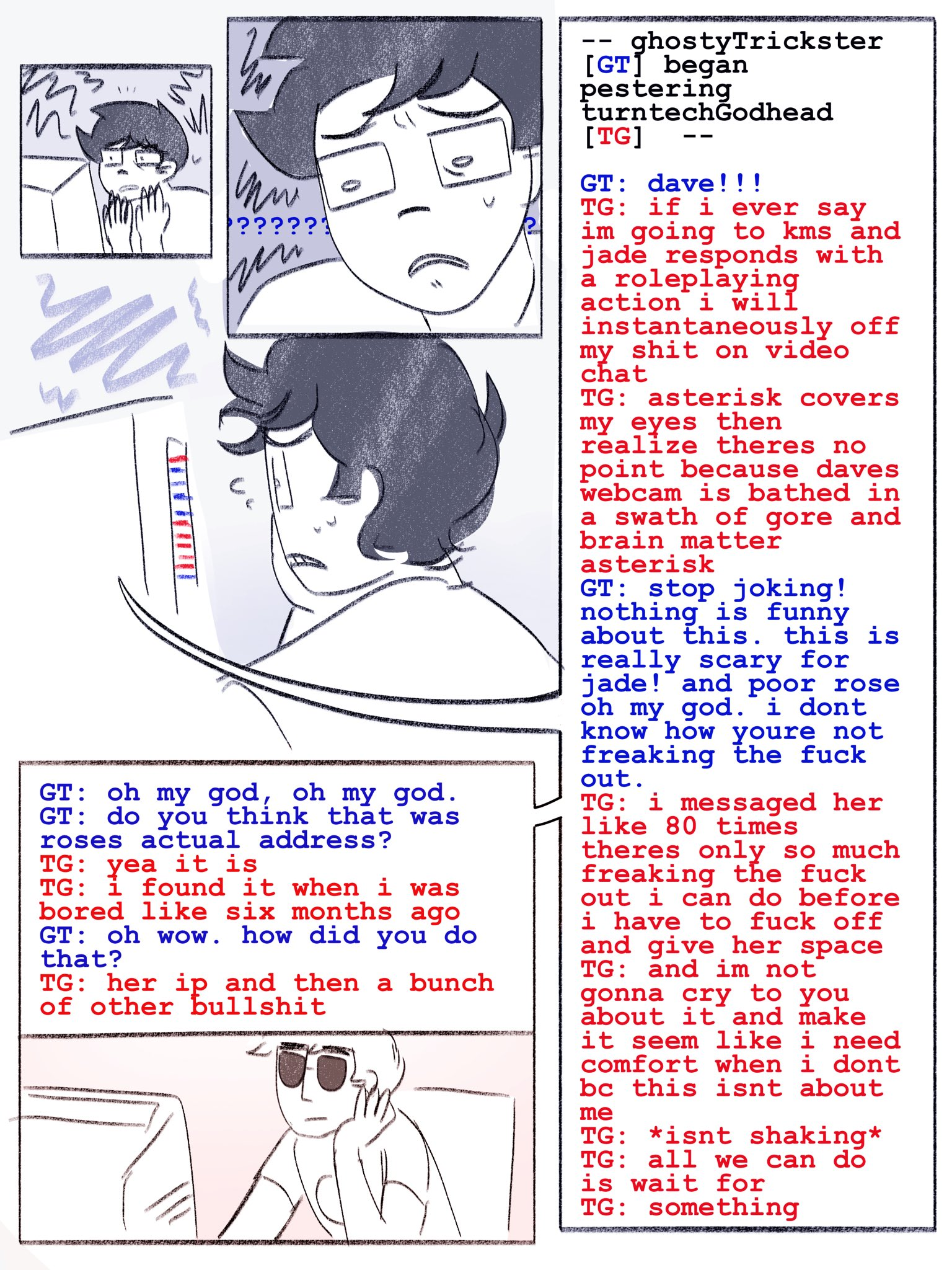 yeah okay I've read through basically everything I can find that predates Problem Sleuth, and all the other stuff that's accessible from UHC before starting it. Most of it sucks. You really can just read the MSPAs and ignore the other shit. TSO is edgy and gratuitous, and Sweet Bro & Hella Jeff made me wonder if I'm more mentally stable than I thought.I guess that concludes Session 00: Before Problem Sleuth. next time I pick this up, I'll start that.