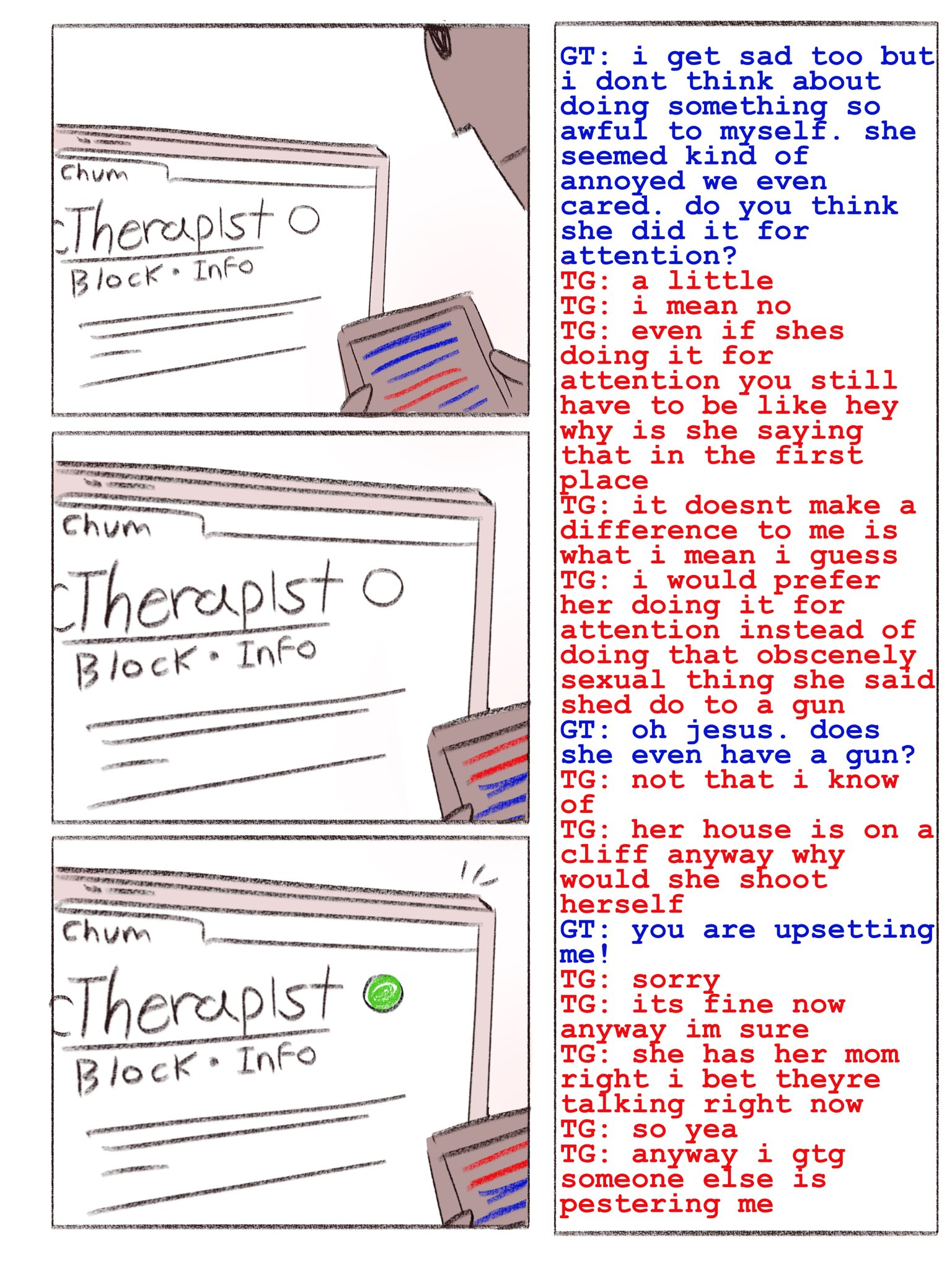 >>153173736holy shit thanks for posting this anon. lol at jade. i'm sick of fanon where they act like rose has her life together, let my girl be mentally ill. self-destructive rose and derse dreamers understanding each other my beloved <33
