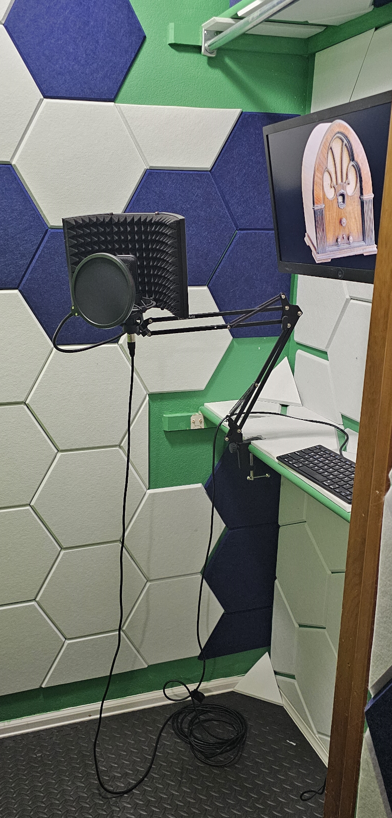Triptych sound dampening shield for microphone booms (royal pain in the neck to set up comfortably)