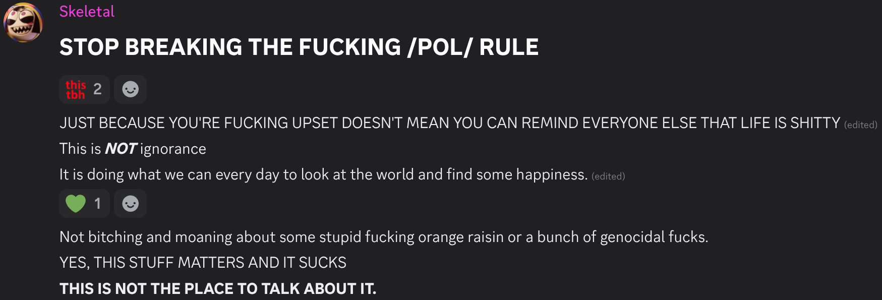 >find a new cartoon that seems fun>look inside the fandom>it's literally all tranniesI guess I don't get to enjoy anything anymore, huh?Welp, time to go full fascist.