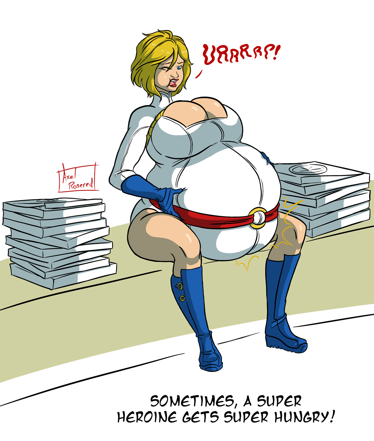 Her pants being too tight for her really sells it. I'll always appreciate a big belly but it's above and beyond when it's just barely restrained by the clothes.