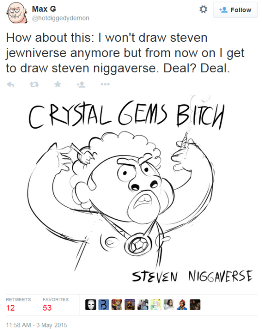 >>153180857>>entire career ruined and gets blacklisted from the animation industryHe wasn't. That is a post hindsight excuse for his own laziness in not looking for connections or spreading his portfolio. Zach has done plenty of spicy shit and he has just ended a 3 season run on adult swim.The "steven jewverse" or "sans nigger" stuff did jackshit, he is just a self sabatoging autist.