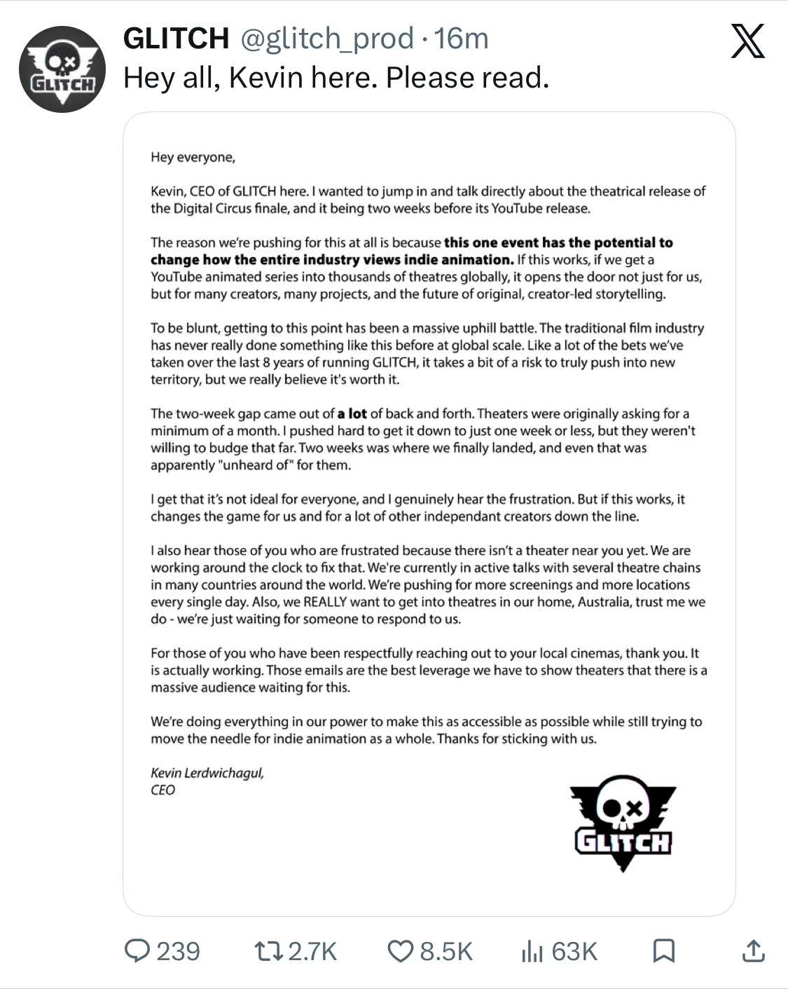 Am I the only one getting sad that the majority of Glitch's audience will buy this whole "thinking about muh creators" bullshit?Cause it just telling how stupid kids are these days. You can convince them of anything as long as it's worded properly and they're not hekin' problematic.