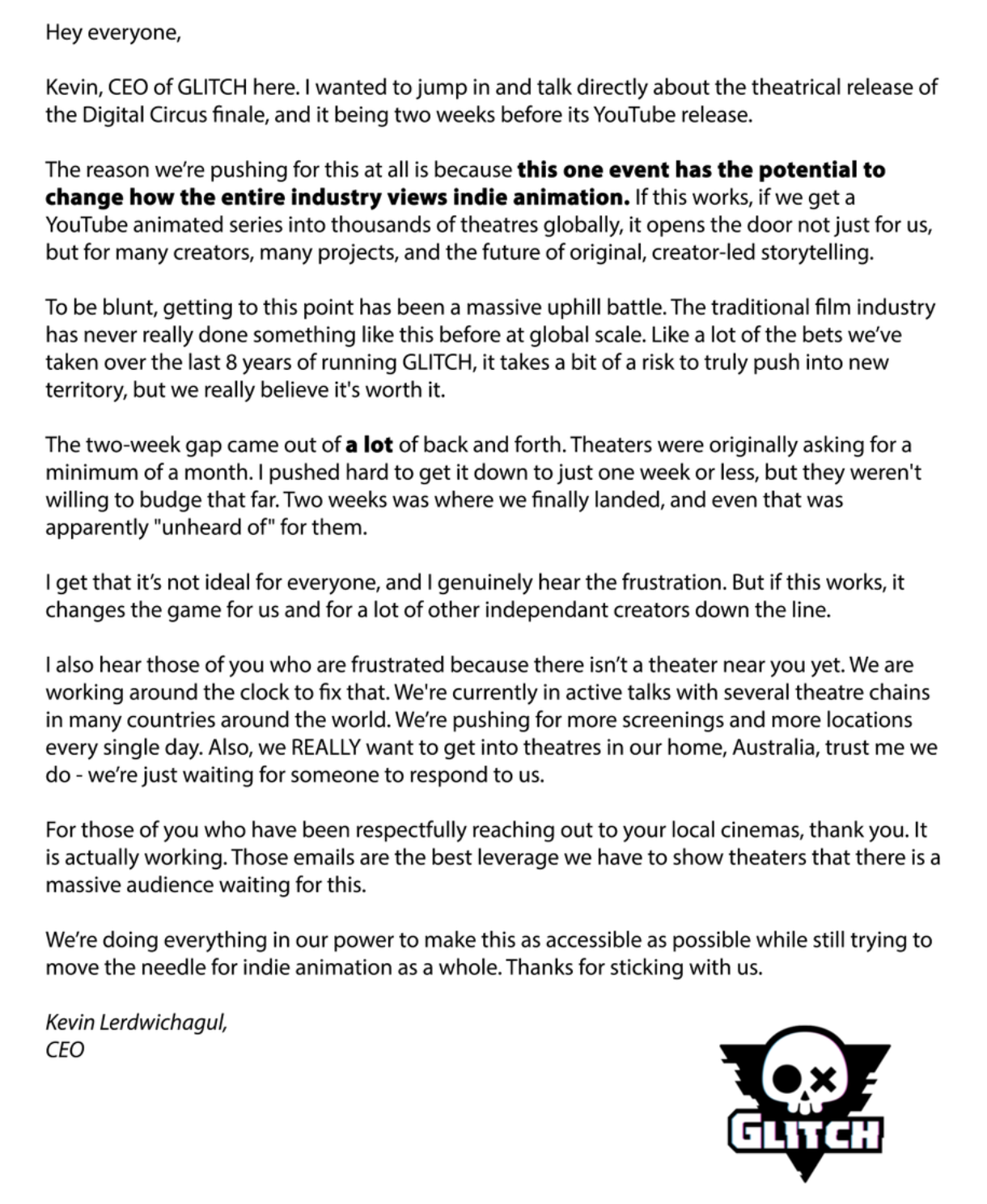 man it'd be a shame if some anonymous rogue glitch employee leaked the episode on the day it debuts so we aren't fucked over. that'd just be so unfortunate for those poor theaters and executives that are already guaranteed to make a fuckload of money