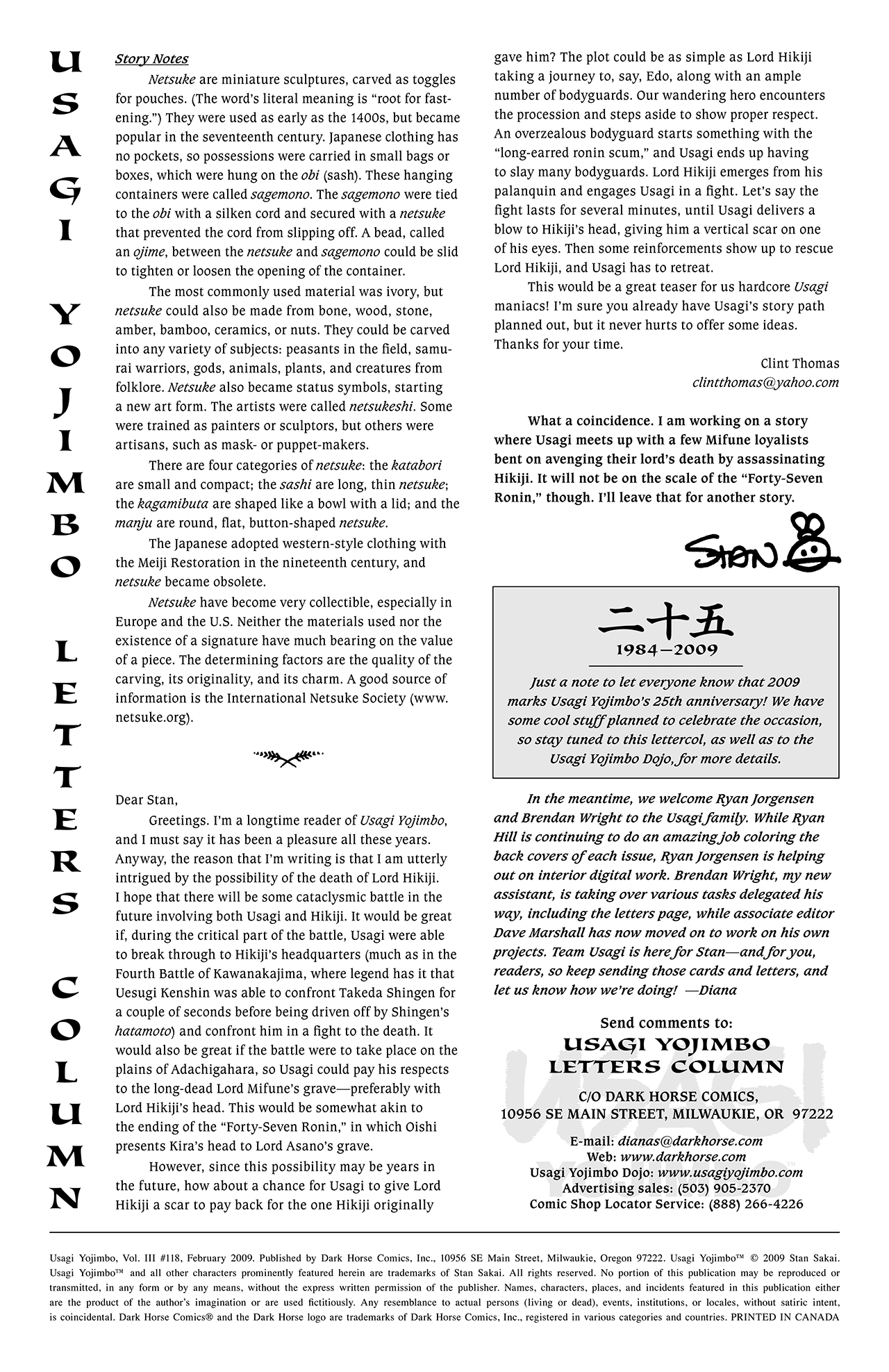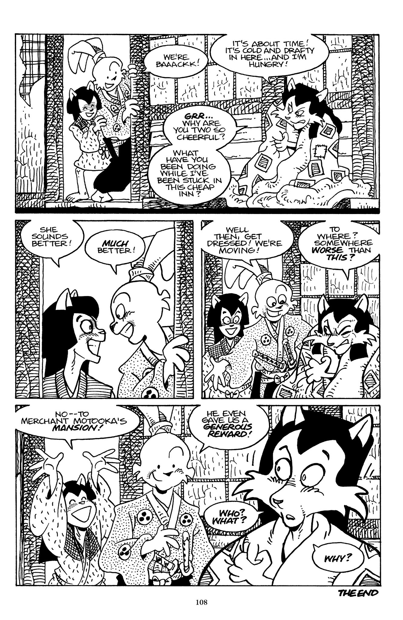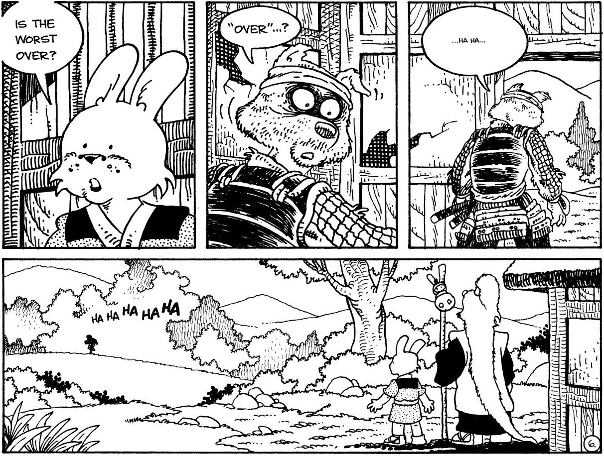 >>153206341>the final story ends on a 'there goes the wandering ronin Usagi off again on the never ending road' last page.That's spot on what Stan has mentioned before how he envisions ending Usagi Yojimbo. Source: post by anonymous on 4chan.There's also that picture of Old Man Usagi as a Katsuichi-like sensei, with a young long-eared rabbit student with the picture notes of Stan explaining this was an idea he was mulling as a possible end for Usagi. I think that would be really appropriate for him as an epilogue page to the final issue.