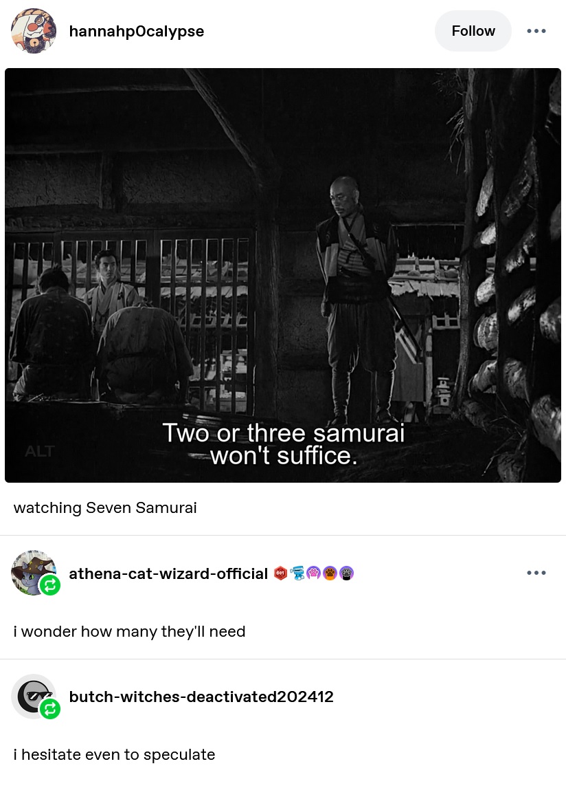 >>153202029Saburo was also the name of the samurai who was part of the Kojima clan's trade delegation. I know Saburo isn't exactly an uncommon name but it's interesting that both of them have similar interactions with Usagi.>>153202100Mom is definitely ronin-pilled on Feudal Japan.