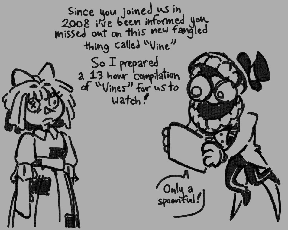 >>153212850>Did you invite Ragatha to a threesome with you and Jax?>Oh... you uh, heard about that?>Yeah, they are almost in tears they're so scared>oh... i didn't mean to pressure her>Her? I'm talking about Jax!>what?>He's with gangle looking through her hentai, he has no idea how to do this>oh...>I didn't say anything but... how is Jax... in the bedroom?>uh, really good, very uh, attentive and->ew, no, i mean... he doesn't have a dick... is he ok with that?>Oh, he was really embarrassed actually but, it's alright now>and you don't think other people seeing him without a dick, aside from his girlfriend, might be a little confronting?>oh no...>Ragatha is super excited, she's borrowed a box of toys>oh god...