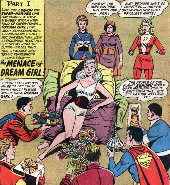 >>153214612that's the trouble with comics supposedly having characters that are supposedly more attractive than others, they all tend to be drawn with the same beautiful faces so the only thing that lets the reader tell them apart is their clothing and hairstyles. How exactly does Dream Girl look better than the other girls here? Well, aside from her being the only one here not frowning murderously.But anyway, if we're talking Silver Age Legion girls, then for me it's Shadow Lass