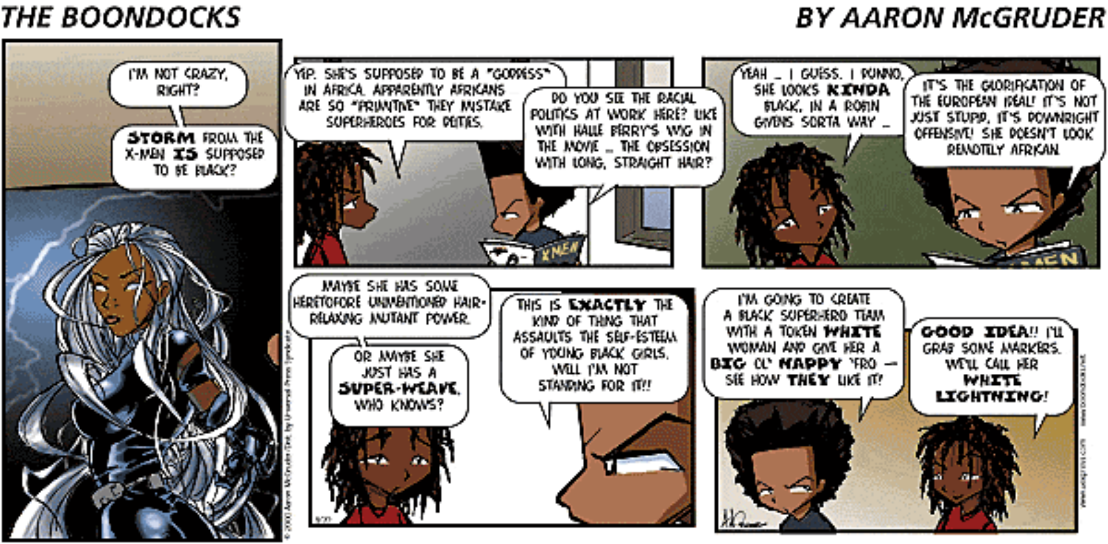 >>153212141My primary start pf X-Men was the animated series. Which now looking back it's funny how nobody had a problem with Storm. I guess Boondocks did