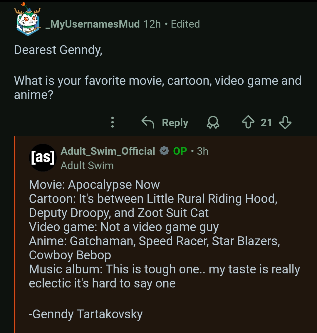 I know, right? Didn't think my opinion of Genndy could get any higher, but here we are. All the selections he made are excellent, too