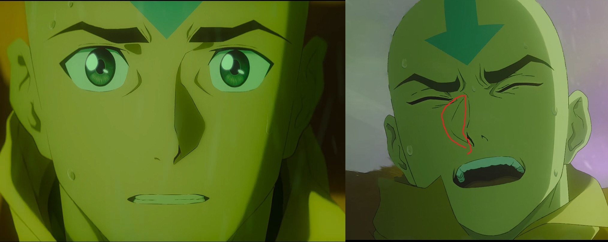 aang and toph's designs are so bad. it's like they stuck their twelve year old faces on an adult's body and gave them chiseled gigachad chins. why the fuck are aang's eyes so big?