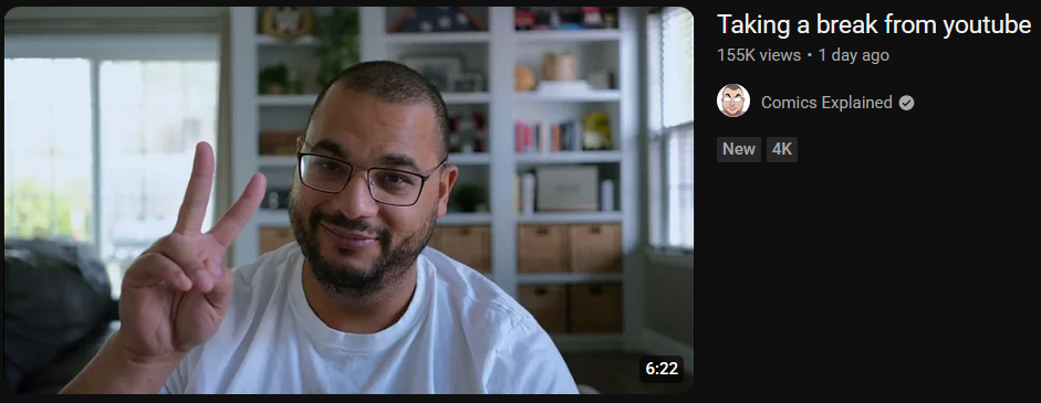 >His videos are just for people too lazy to read>Takes break because he got into drama with some black dude who always victim blamingWhat's wrong with comics Youtube? what happened to regular guys who just talk about books they read like Blowshimselfupdude? I know a few exist but most suck ass or have some type of problem, there's a very short list of good comic Youtubers but summary channels and drama channels are a cancer to comics, at least channels like Ralph's Retro Comics,Lost Heroes Of The Golden Age and few others exist or I think it's all lost.