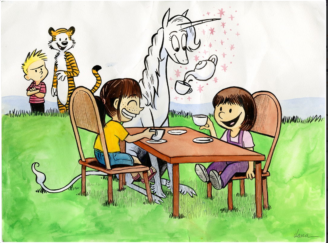 >>153220858>>153220884A premise featuring a human friend and a non-human friend is a very common trope- it's not even close to being a Calvin & Hobbes clone.Also, Marigold's not even imaginary; she canonically interacted with Phoebe's parents on multiple occasions.