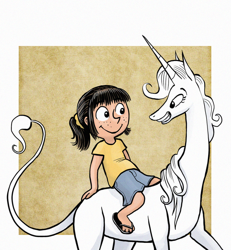 The unicorn is cute and funny and the jokes are good