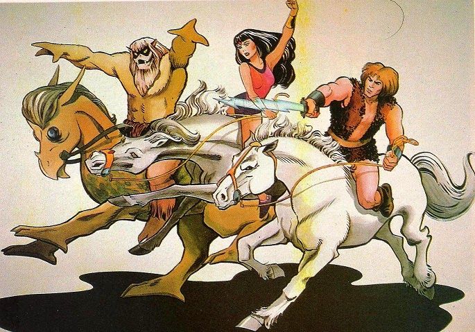 A great early 80s cartoon that set the stage for He-Man and inspired many other cartoons and games like RIFTS. Only 21 episodes but the setting was fantastic in every sense of the word. And now it's got a comic series that came out recently. >In the year 1994, From out of space comes a runaway planet, hurtling between the Earth and the Moon, unleashing cosmic destruction! Human's civilization is cast in ruin! Two thousand years later, Earth is recivilized with A strange new world rises from the old: a world of savagery, super science and sorcery. But one man bursts his bonds to fight for justice! With his companions Ookla the Mok and Princess Ariel, he pits his strength, his courage, and his fabulous Sunsword against the forces of evil. He is Thundarr, the Barbarian!