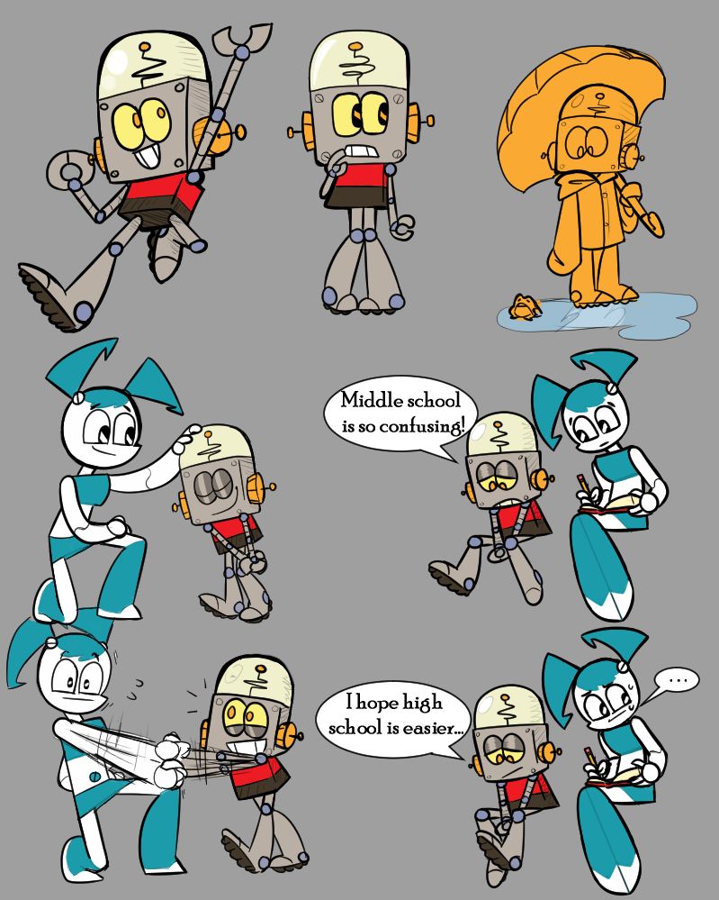 >>153228493Robot, the boys and Shannon at the pool. Robot is in the water, Shannon gets electricuted by the robot kid, Cubey doesn't bring a top and lifts "his" glasses to convince his friend, Mitch is chill with a drink and blissfully unaware his friend's a tomboy and Socks is questioning his life choices, his sanity and everything else.