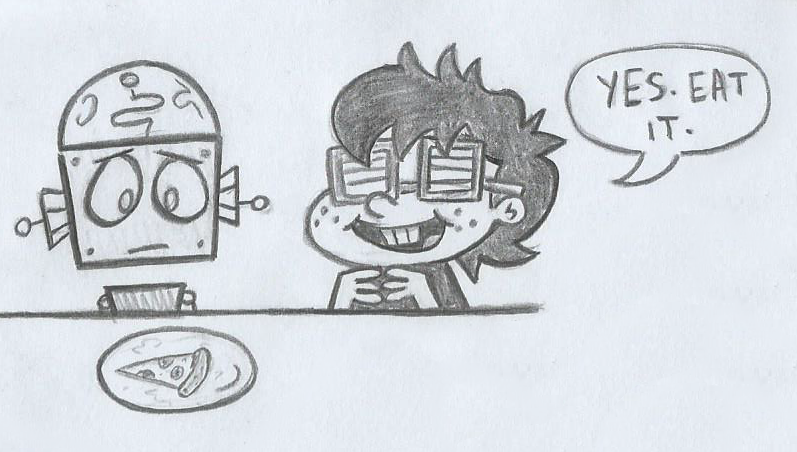 >>153228493Cubey making Robot eat pizza