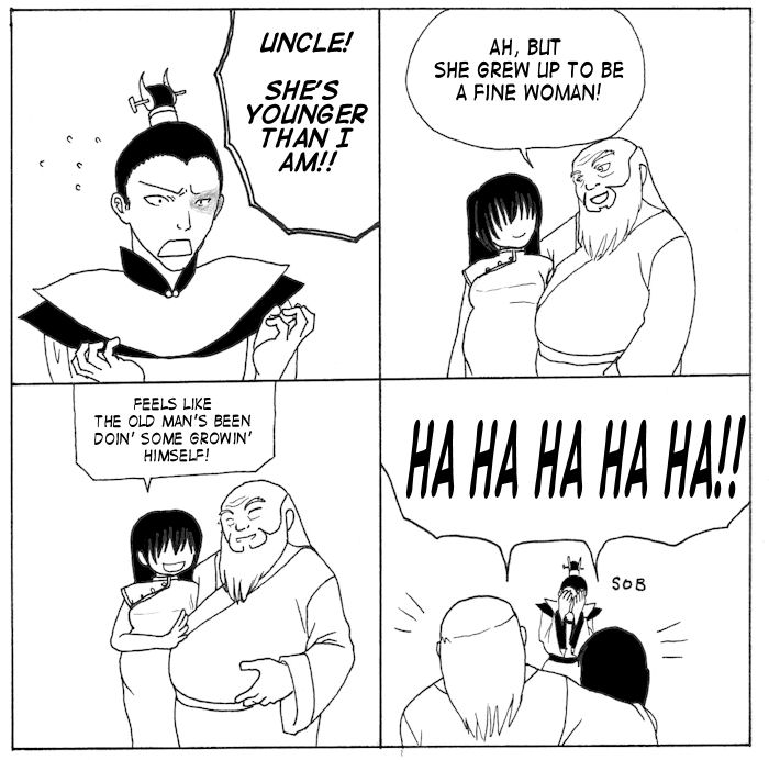 Everybody's horny for muscle Toph, but I can only think of what a terrible mother she ends up being.