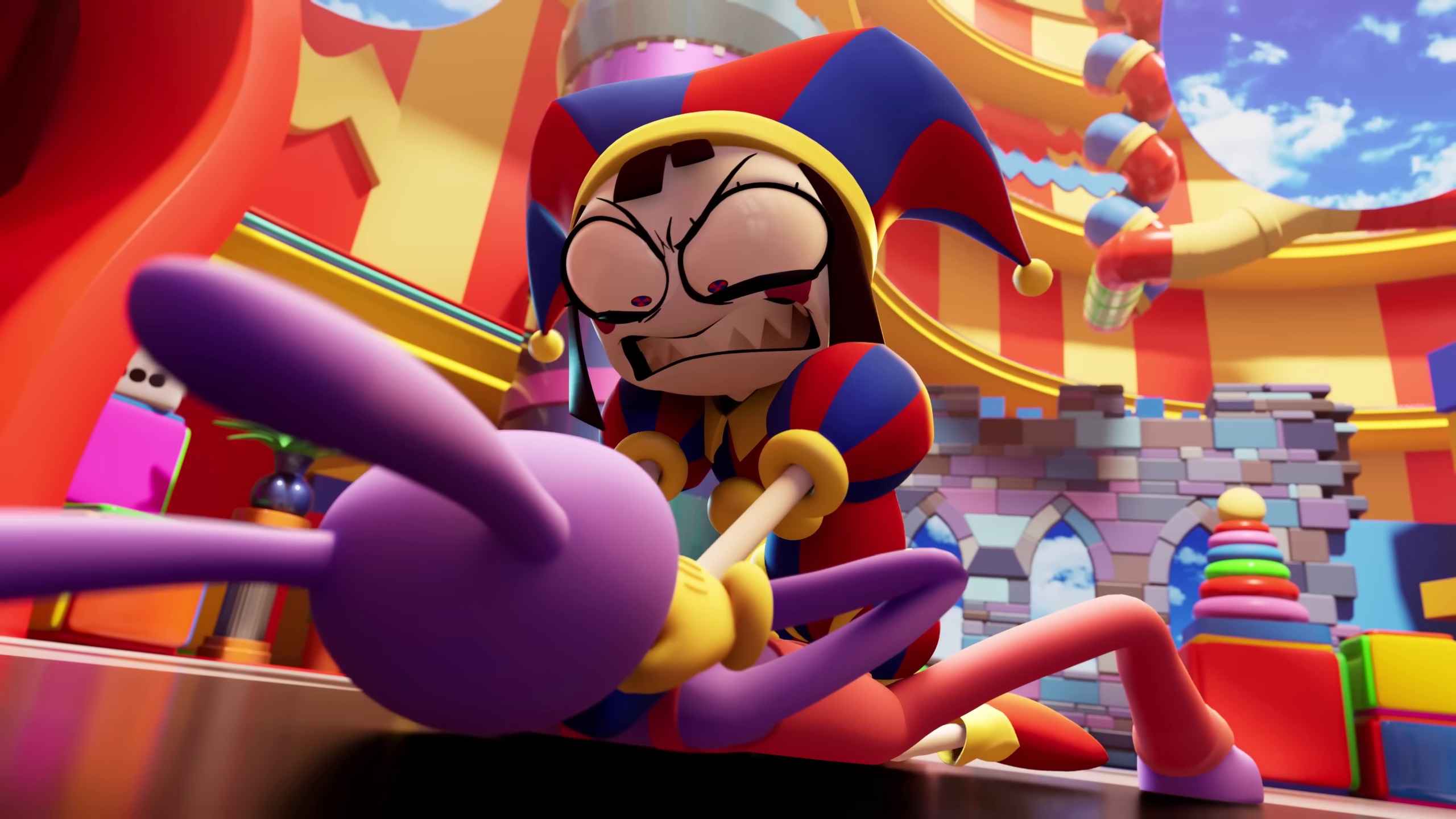 Who could beat up a God? Pomni! Who could lift a truck? Pomni!Who shoots a gun? Pomni! Who pays her taxes?NOT POMNI!