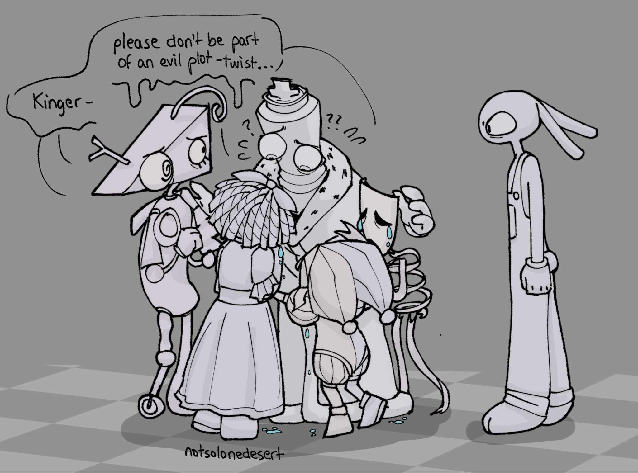 Anyone got that pic of gangle pomni zooble and ragatha telling kinger to not be a plot twist villain