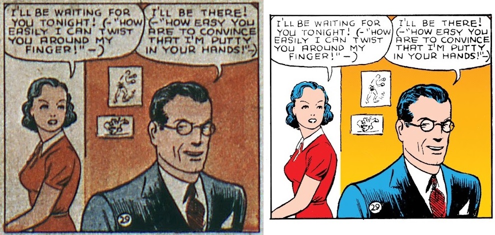 >My contract wasn’t with Marvel, it was with a restoration company out of St. Louis. Our work was rejected if we would have done it like the middle example…because the middle example isn’t adhering to how the original printers were calibrated, it’s adhering to the color tonality.
